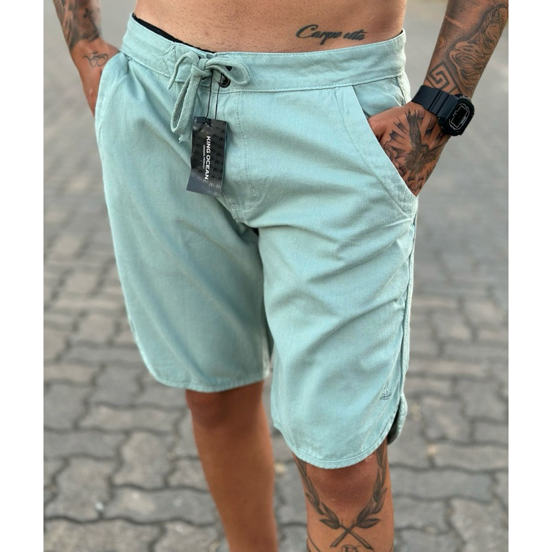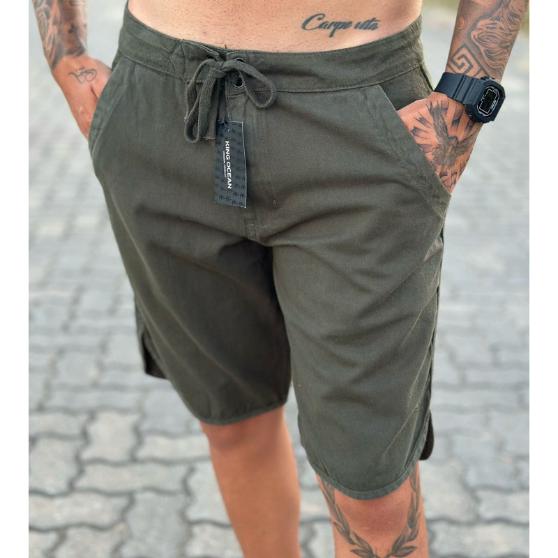 Bermuda Masculina Casual Sarja Cadarço Básicas Diversas Cores (ENVIO IMEDIATO)