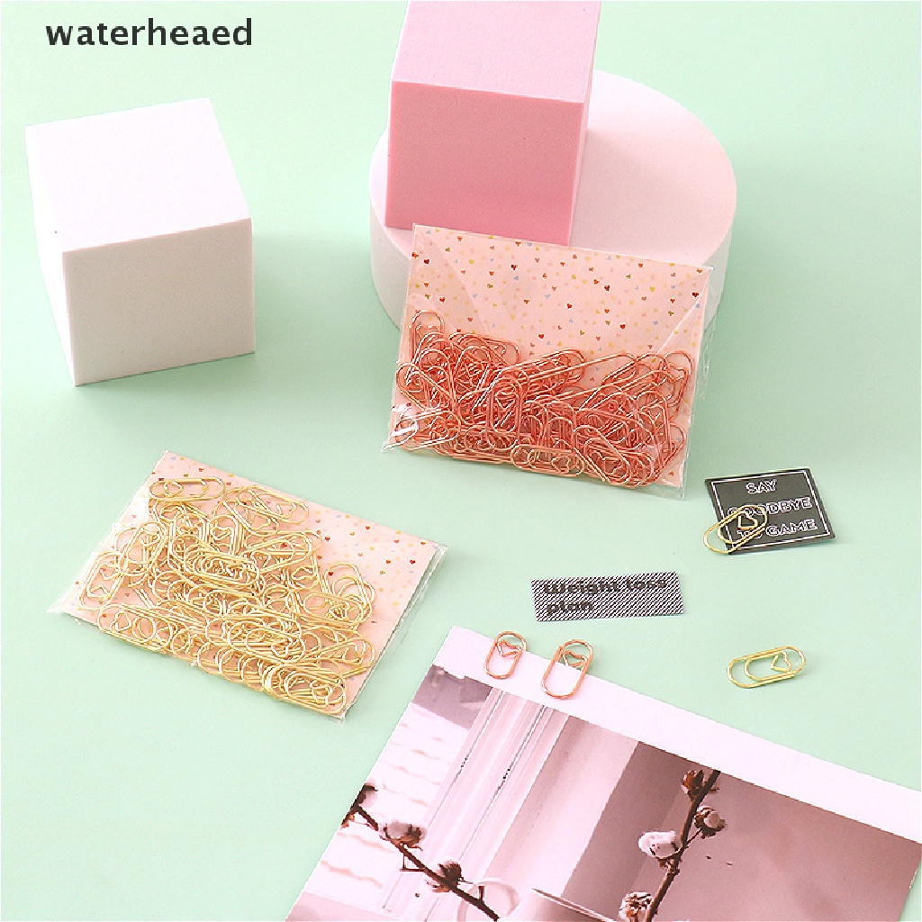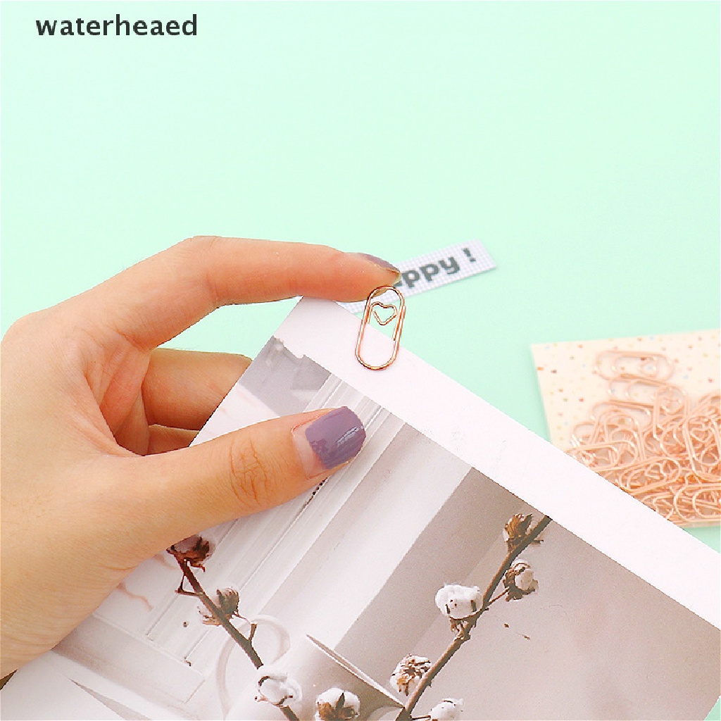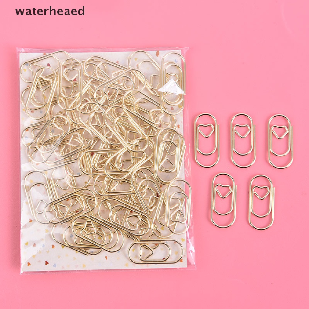 (waterheaed) 50 Pçs/Saco mini Coração Dourado Rosa Cor De Ouro Clipe Marcador De Livro De Metal Clips De Papel Na Venda