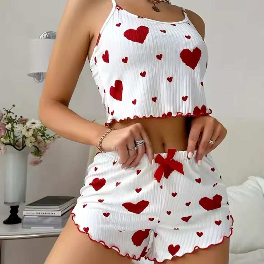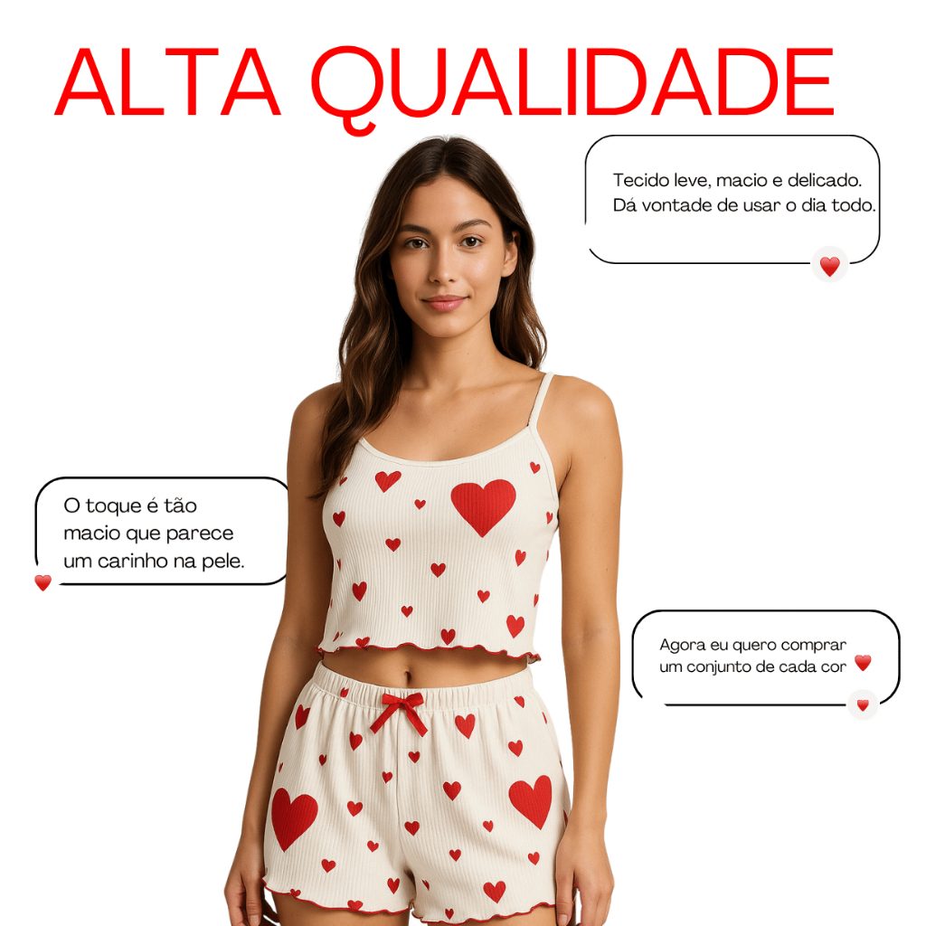 Conjuntinho Baby Dool Blogueirinha Sexy Feminino de Coração Pijama Feminino Verão