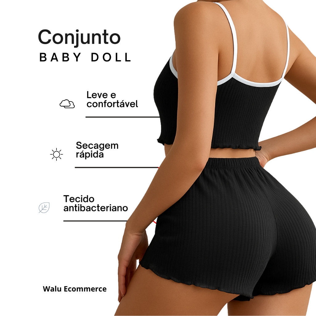 Kit 3 Conjuntos Pijamas Baby Doll Feminino Blogueirinha Sexy Canelado