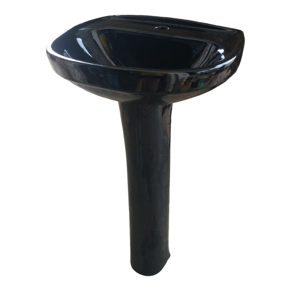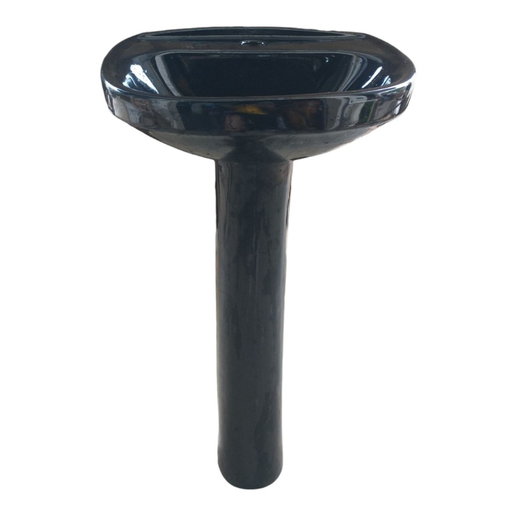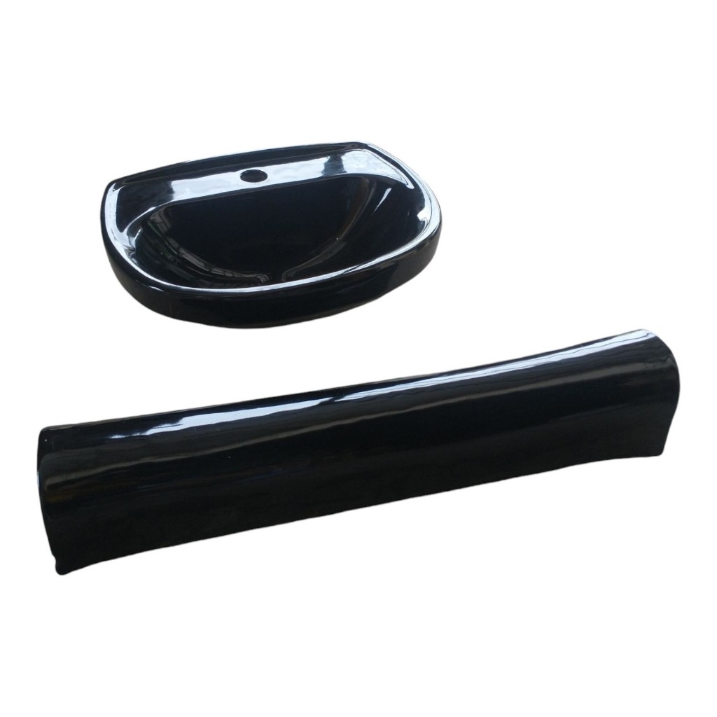 Kit Pia Lavatório Preto Para Banheiro + Coluna Preta Araxá Santa Clara