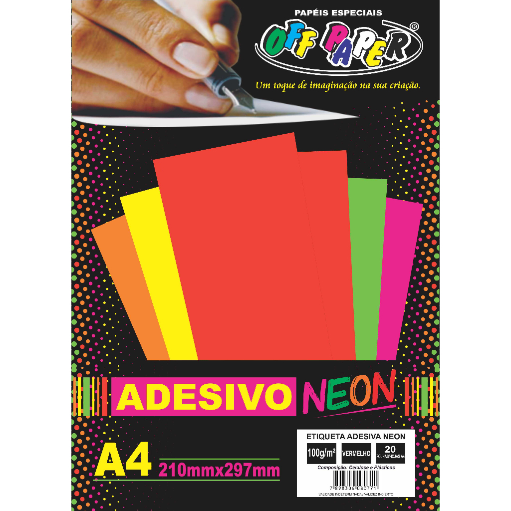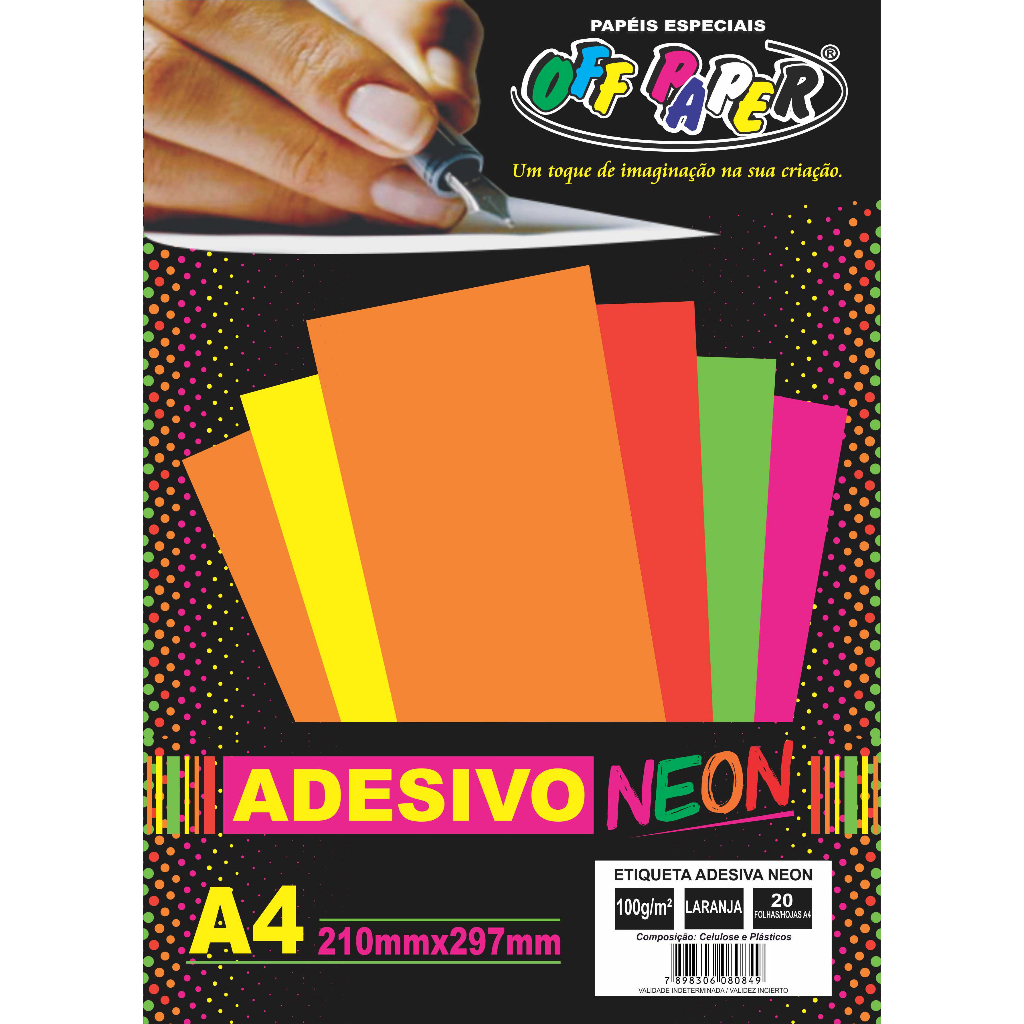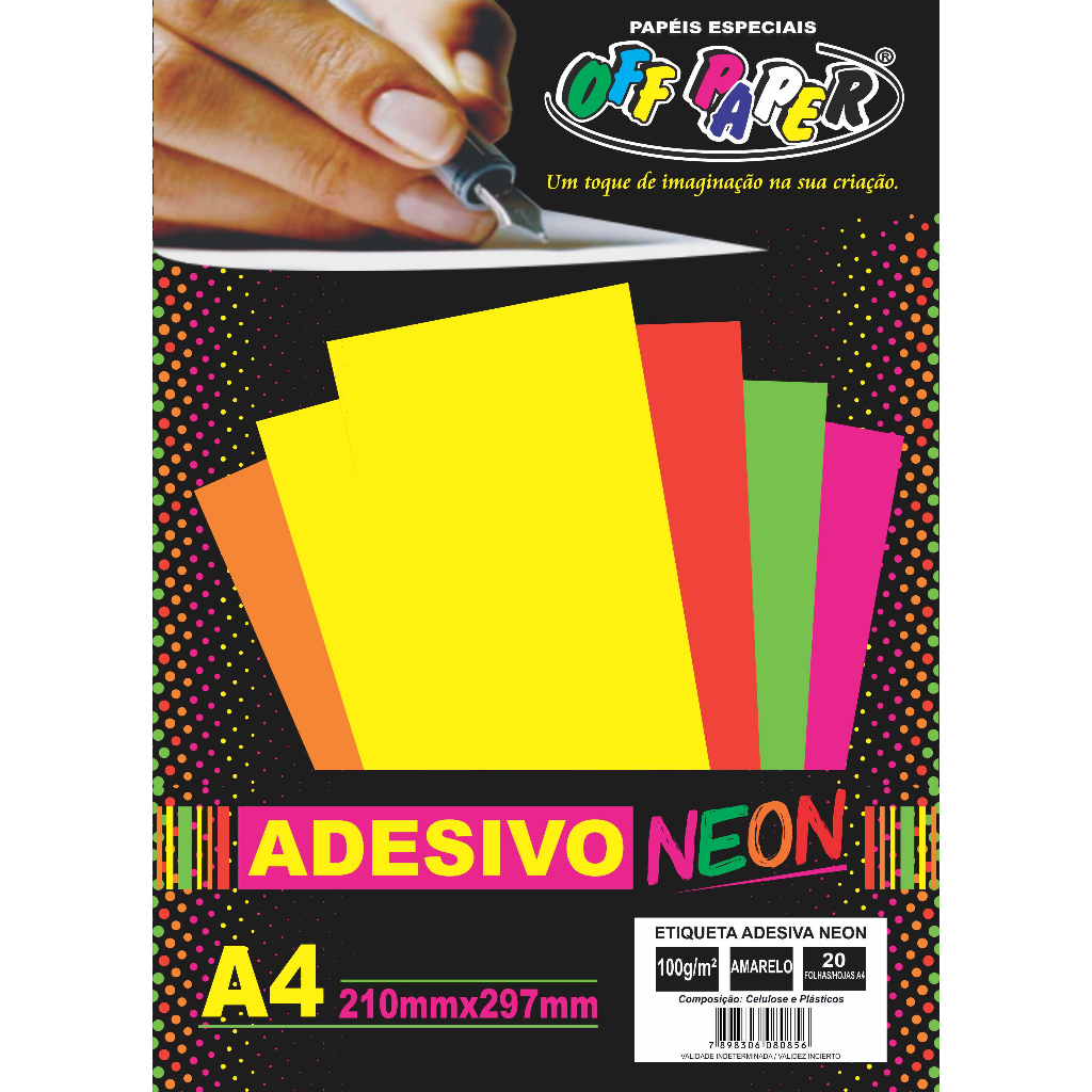 Papel Adesivo Neon 100g Offpaper (20 Fls A4) Etiqueta Adesiva Colores Adesivada Papelaria Brilha na Luz Negra