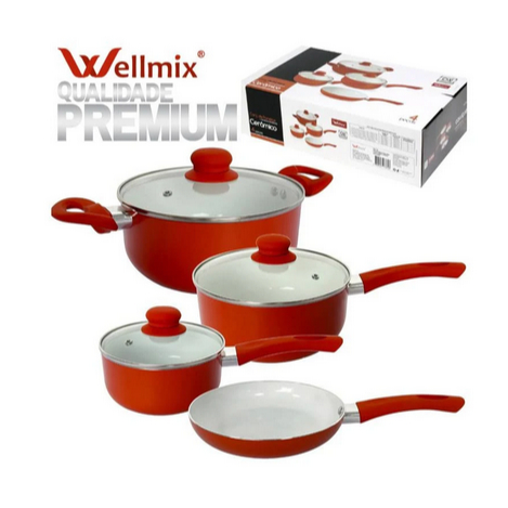 Jogo Panelas 4 Peças Revestimento Cerâmico Cinza - Wellmix