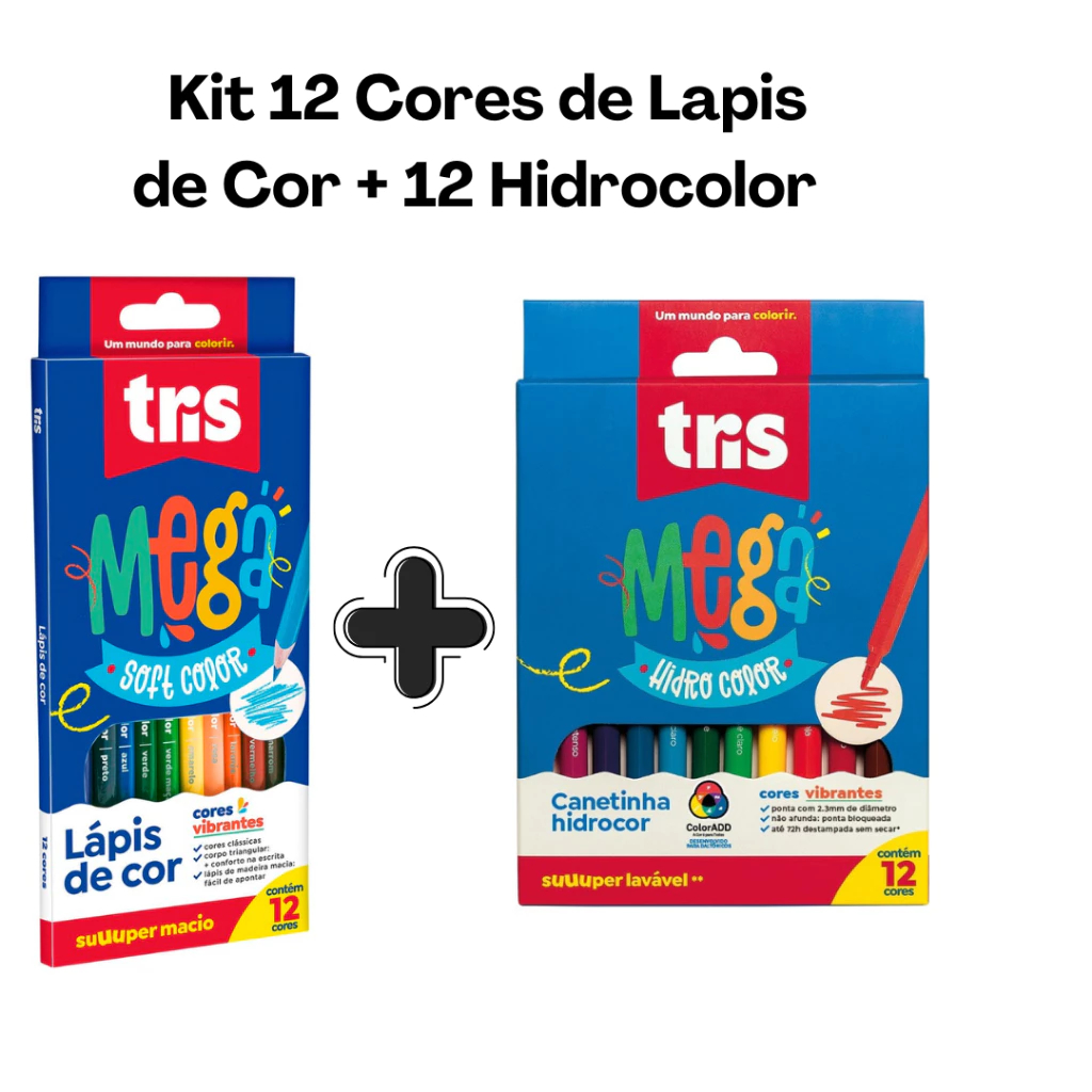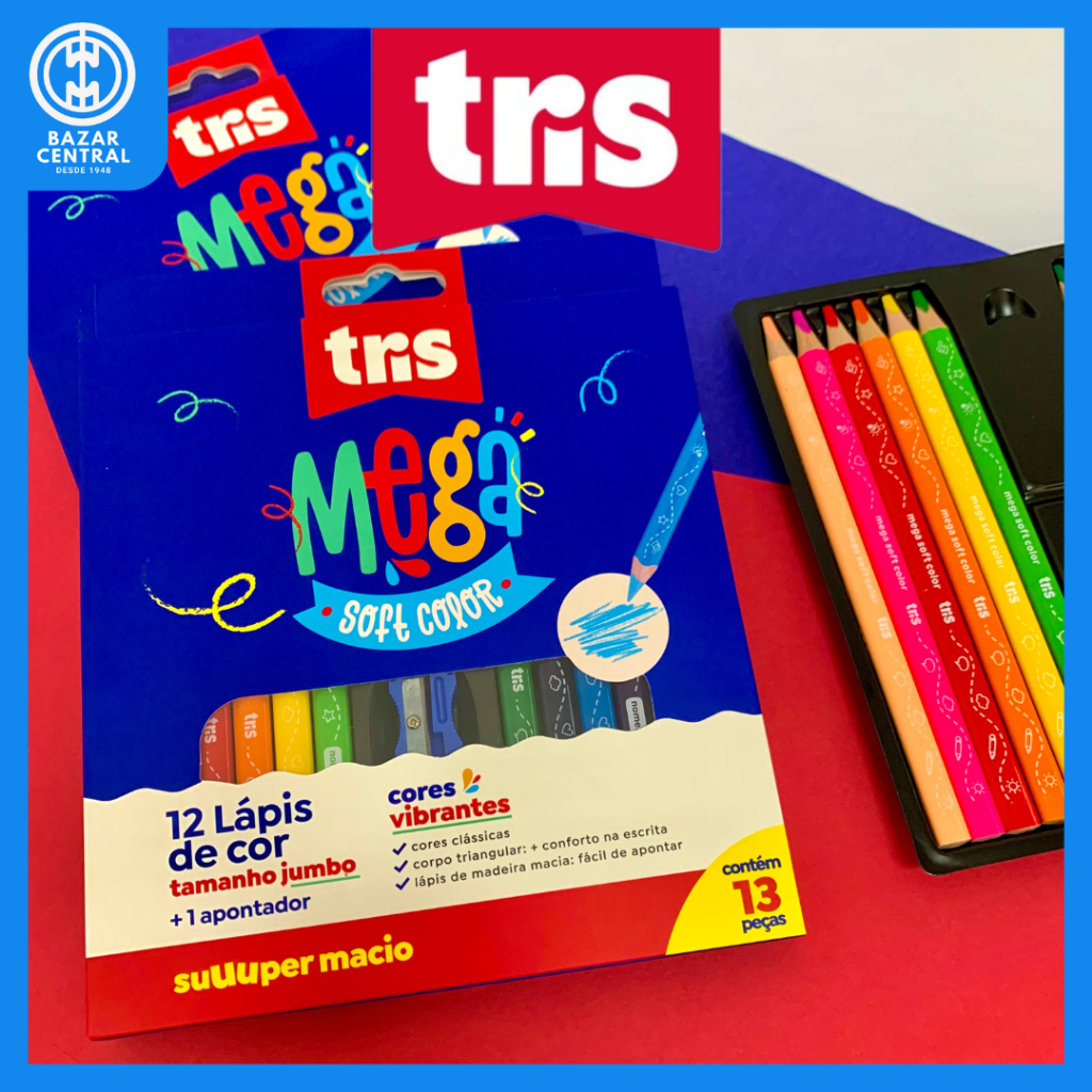 Lápis de Cor Mega Soft Color TRIS - 24, 36 48 Cores.