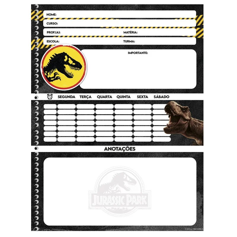 CADERNO BROCHURÃO OU ESPIRAL JURASSIC PARK 1 MATERIA - ANIMATIVA