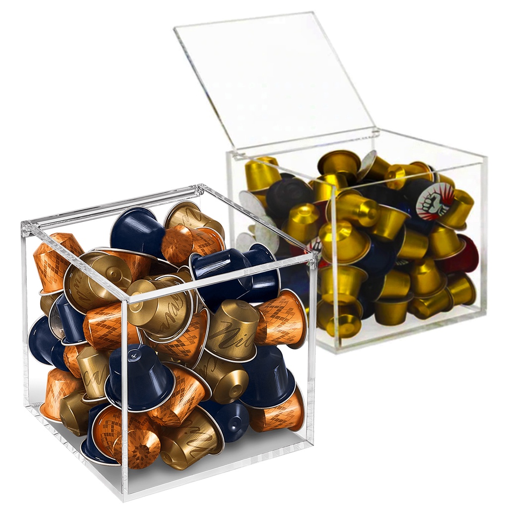 Porta Capsula de Cafe Dolce Gusto Nespresso Acrilico Bombons Balas Doces Cristal 13x13x13 Para Balcao Aparador Mesa de Centro Nao Amarela