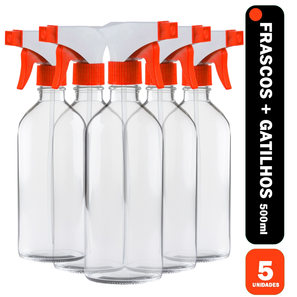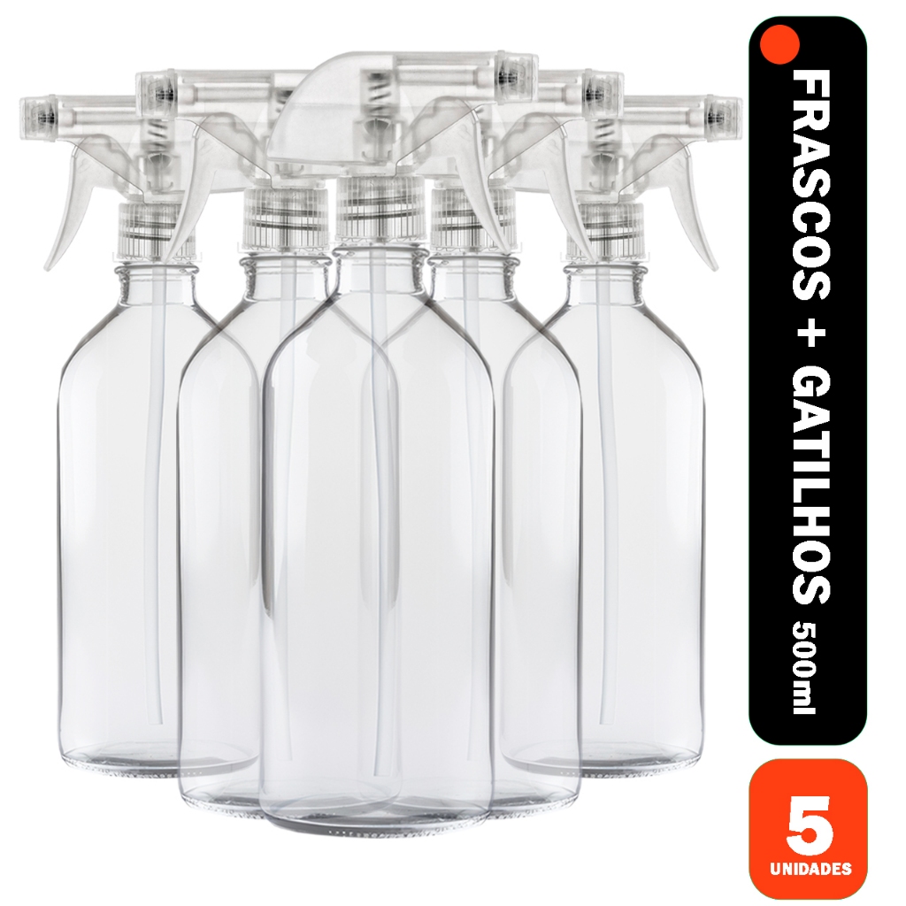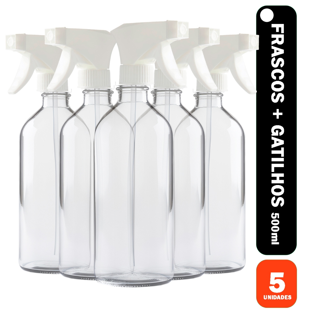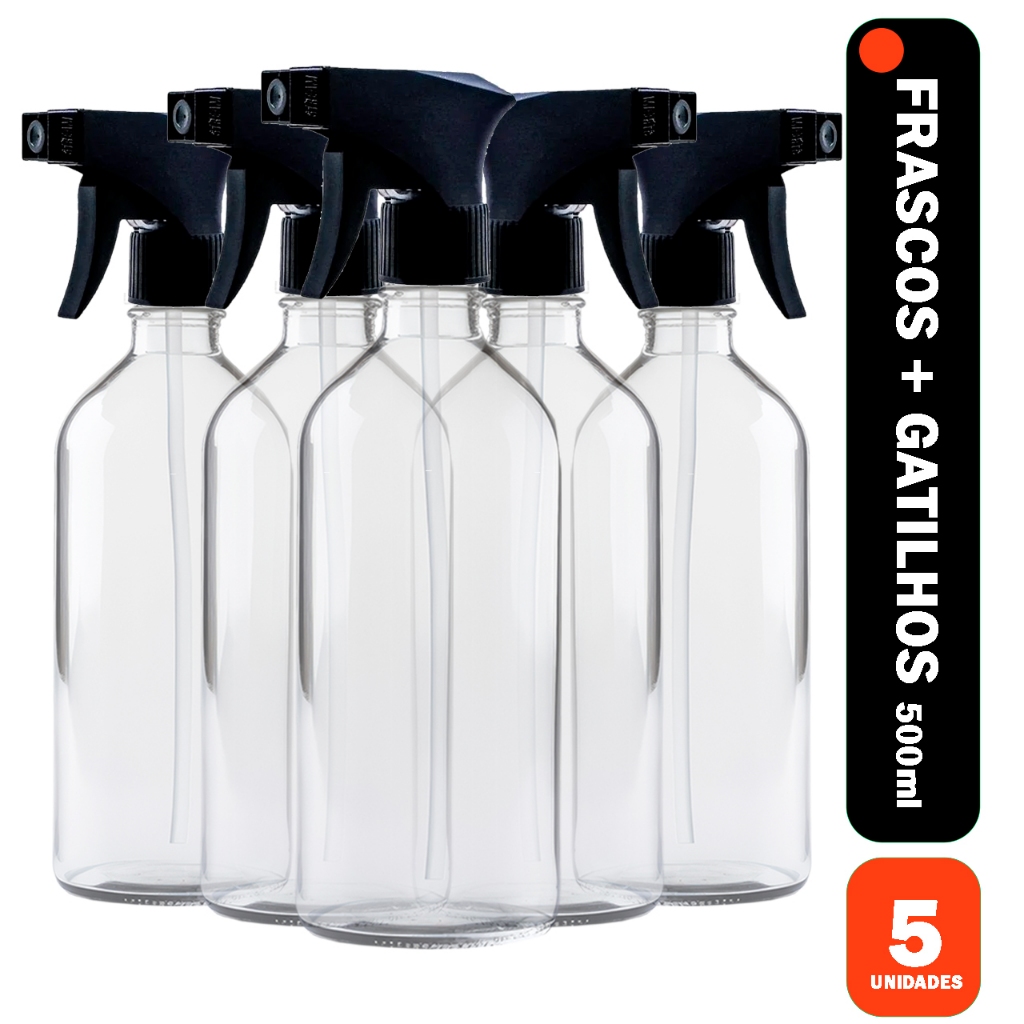5 Borrifador 500ml com Gatilho - Pulverizador para Limpeza, Jardim e Uso Doméstico e Geral