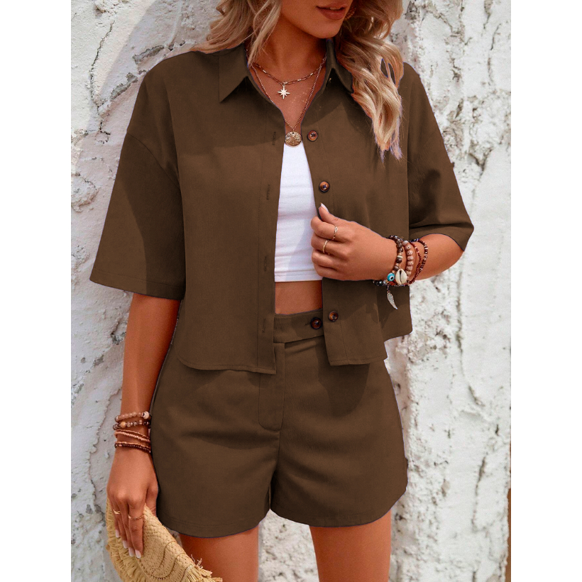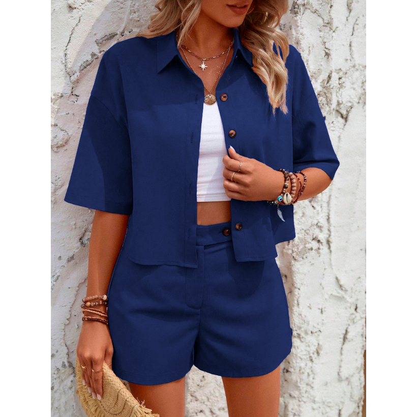 Conjunto Feminino Alfaiataria LEVEL Varias Cores Camiseta e Short Verão