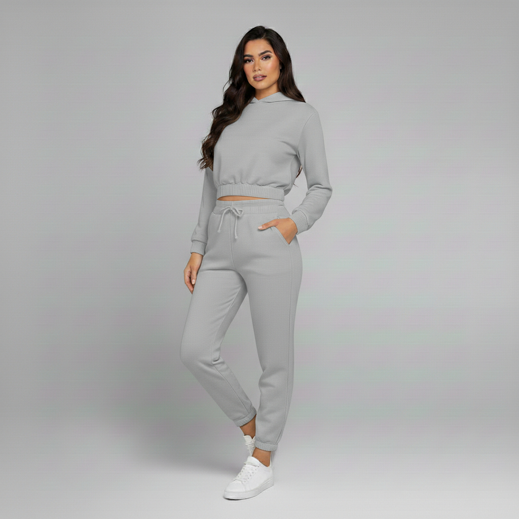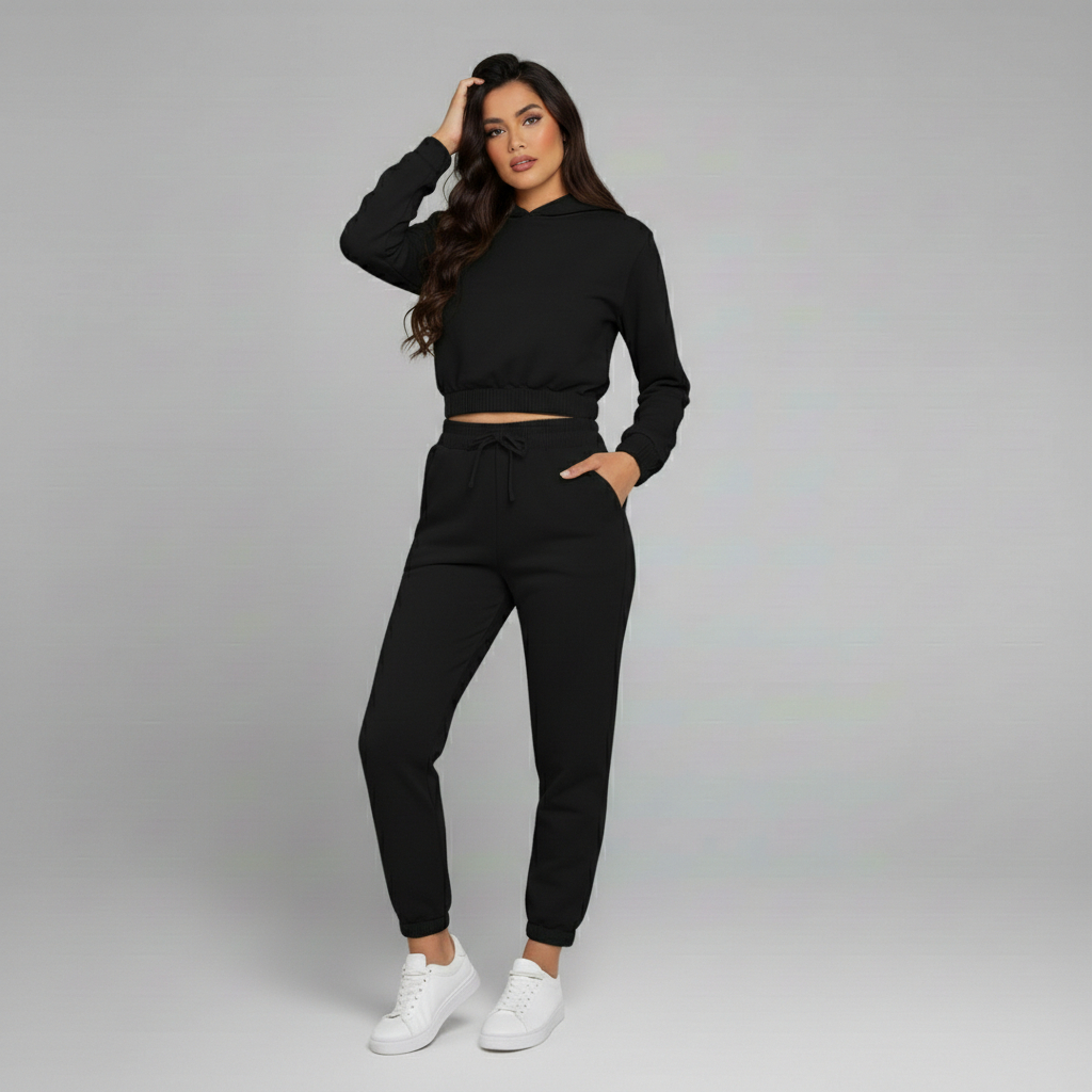 Conjunto Feminino de Moletom Calça Jogger e Cropped Com Capuz