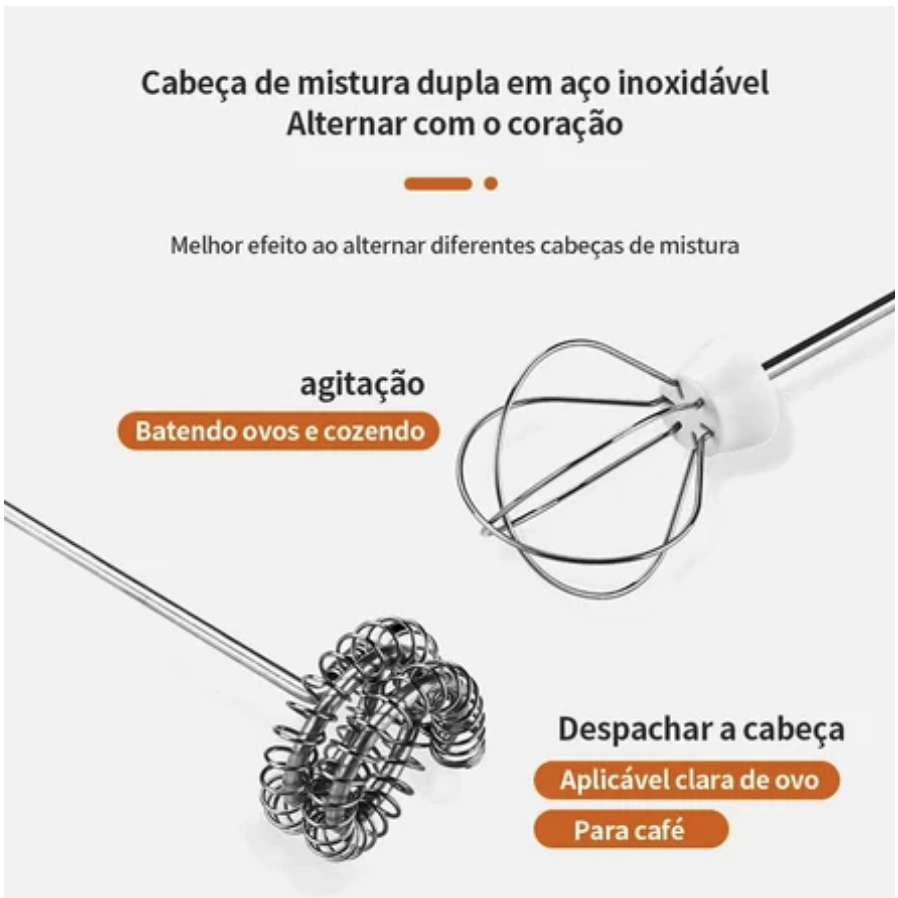 Batedor de Ovos Elétrico Portátil com 2 Batedores – Recarregável USB – Mixer de Cozinha