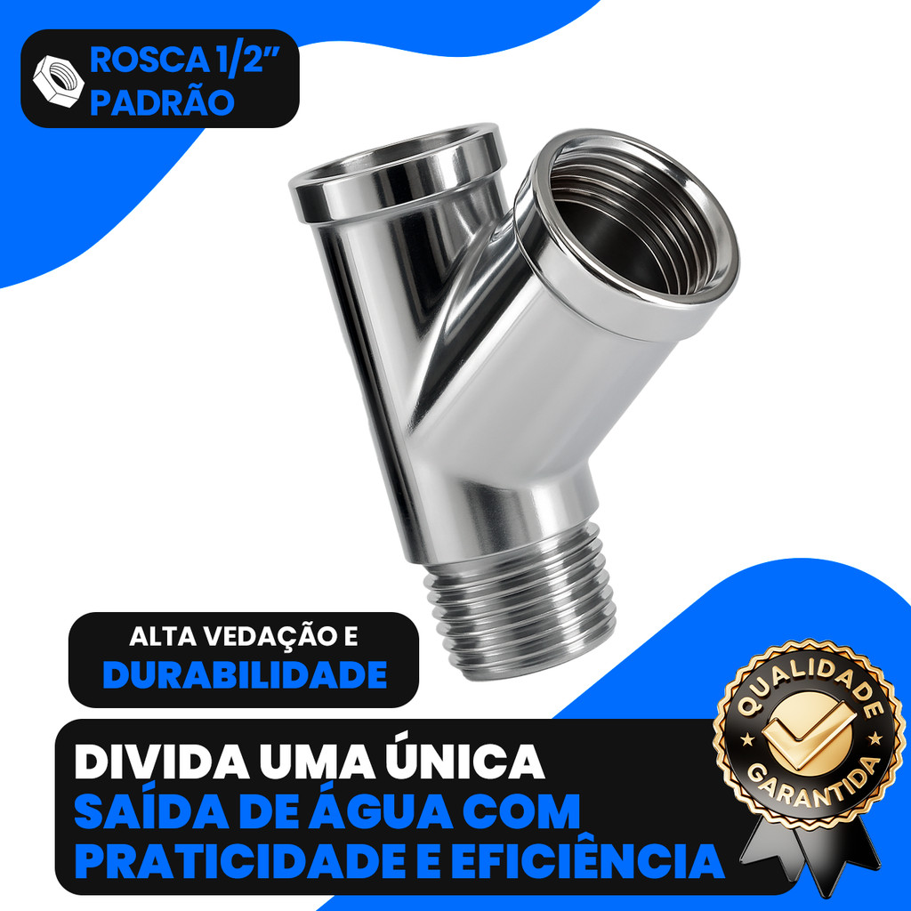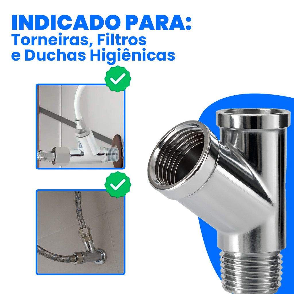 Junção Adaptador Y 1/2" Metal Cromado Para Torneira, Filtro E Ducha Higiênica Conector Ponto De Água