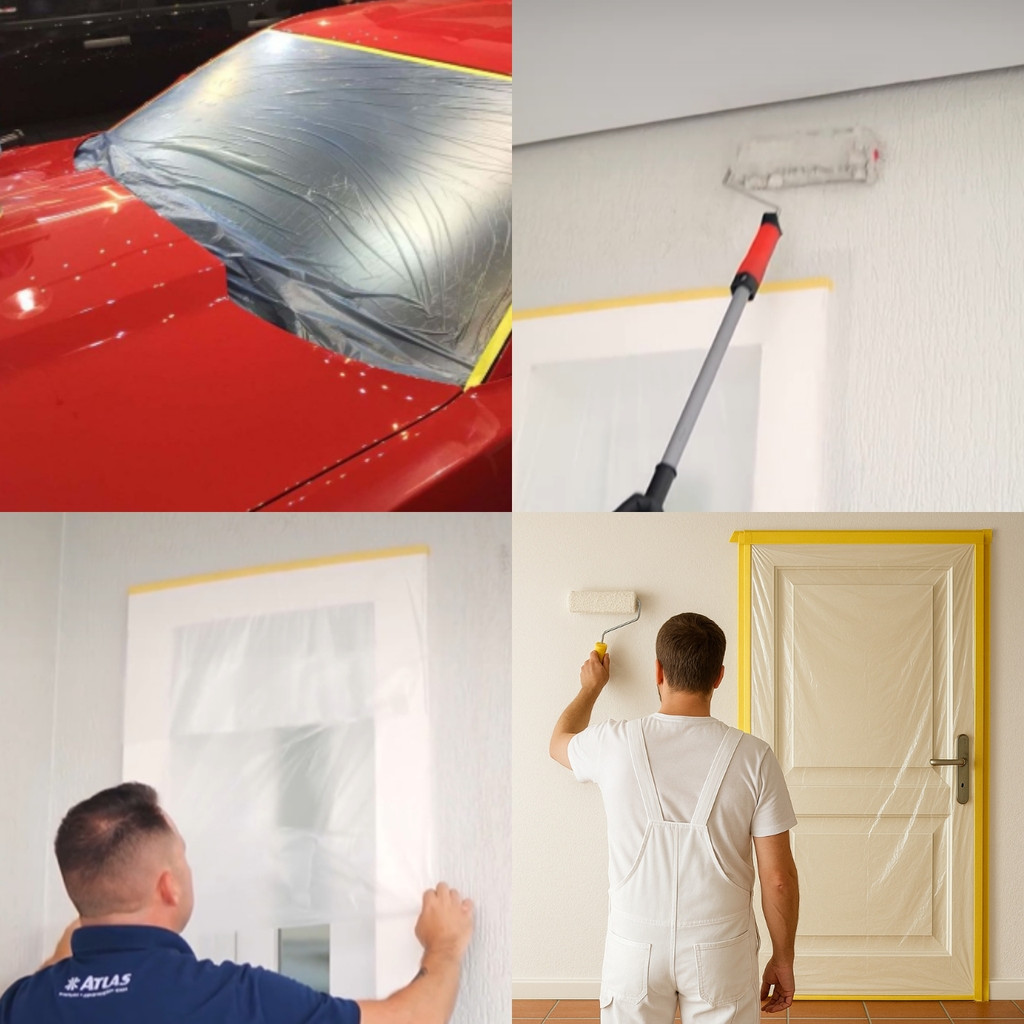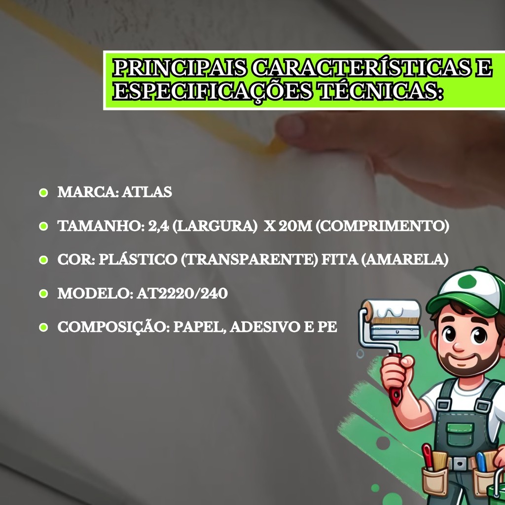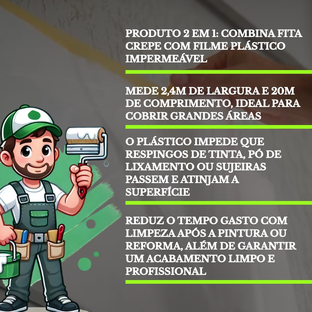 Plástico Filme Protetor Mascaramento 2,4m x 20m C/ Fita Adesiva Pintura Respingo Tinta Mancha Móveis