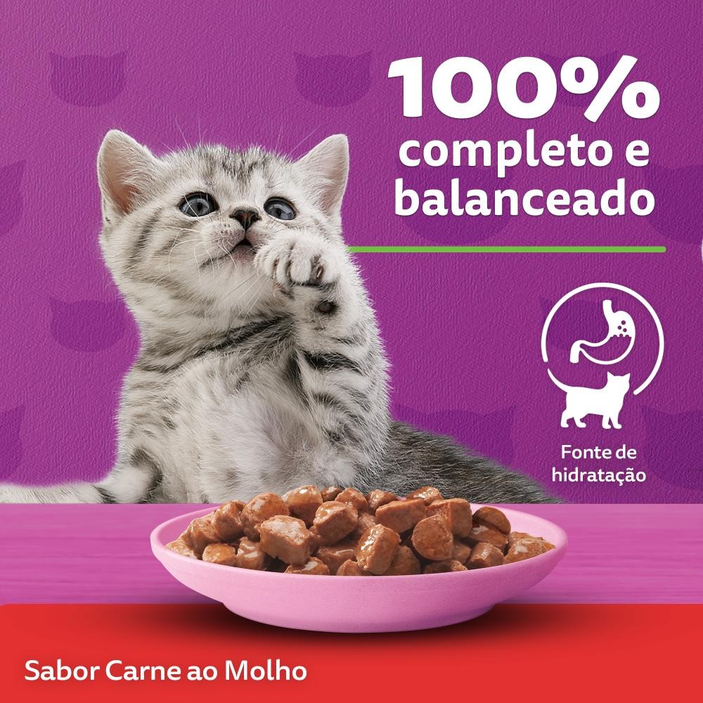 Kit 20un Ração Úmida Whiskas Sachê Carne Gato Filhote 85G