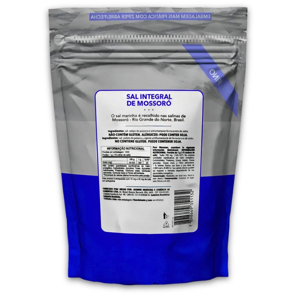 Sal Integral Mossoró Fino Smart 1kg Sem Glúten