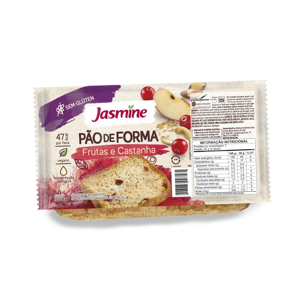 Jasmine Pão Frutas E Castanhas Sem Glúten 350G