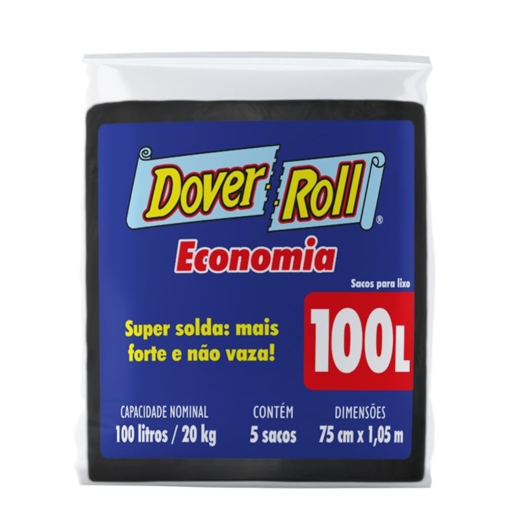 Saco Para Lixo 100L Dover Roll Economia Preto 5Un
