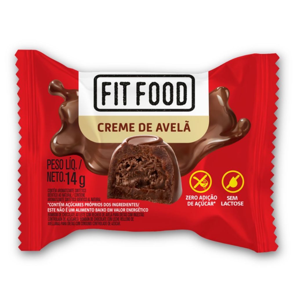Caixa 14un Bombom Ao Leite Recheio Creme De Avelã Zero Lactose Fit Food Pacote 14G