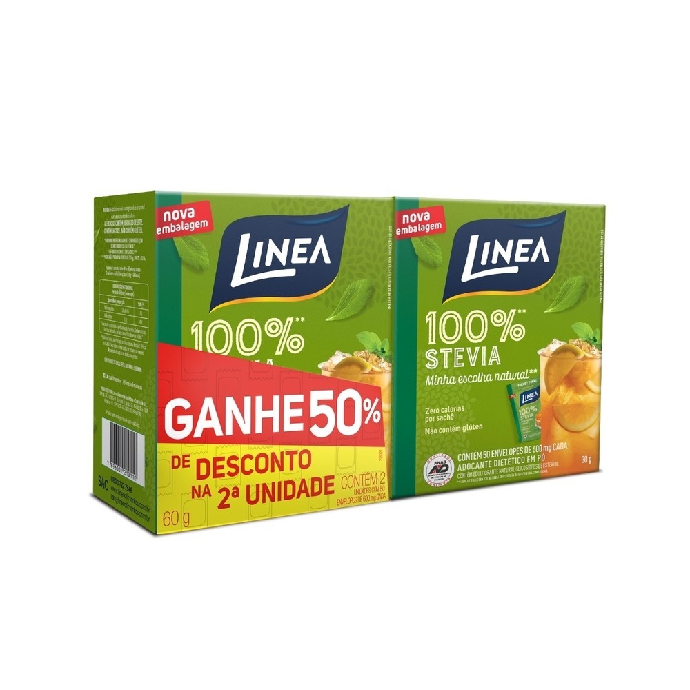 Pack 2un Adoçante Em Pó 25G Stevia Linea Com 50 Envelopes