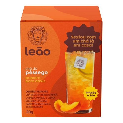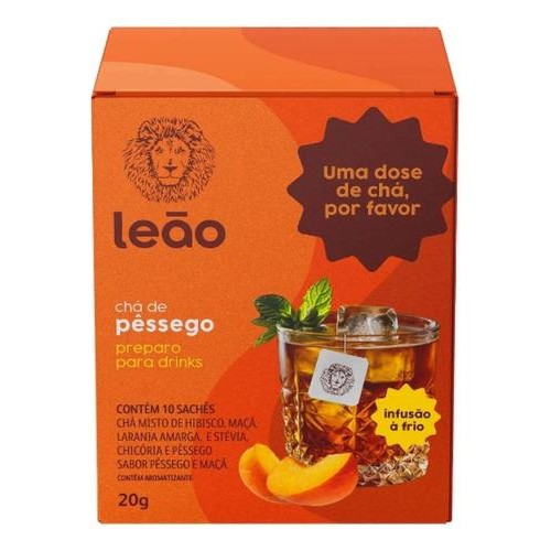 Chá Pêssego Drinks Leão 10 Sachês