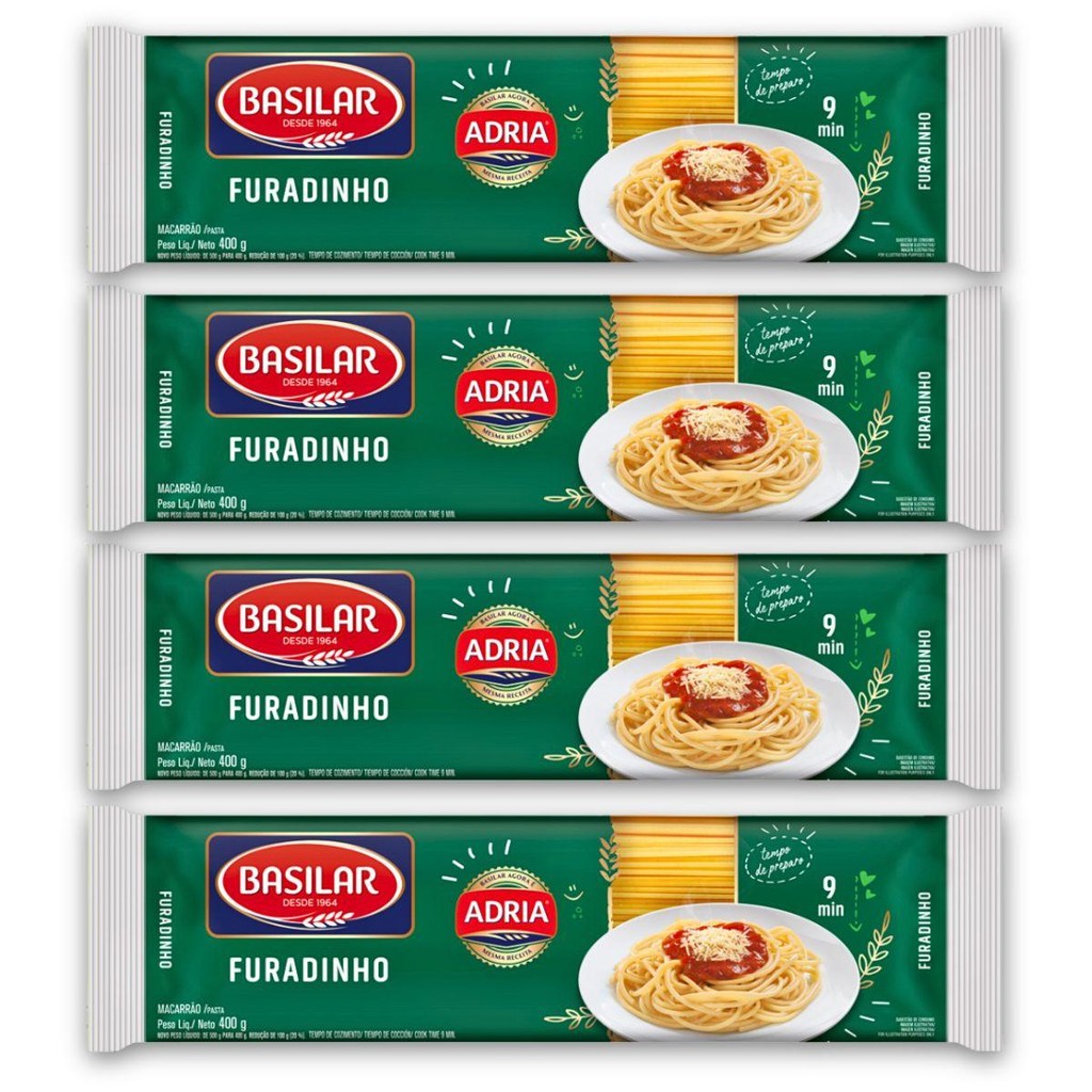 Kit 4un Pacote Macarrão 400G Semolado Furadinho Basilar