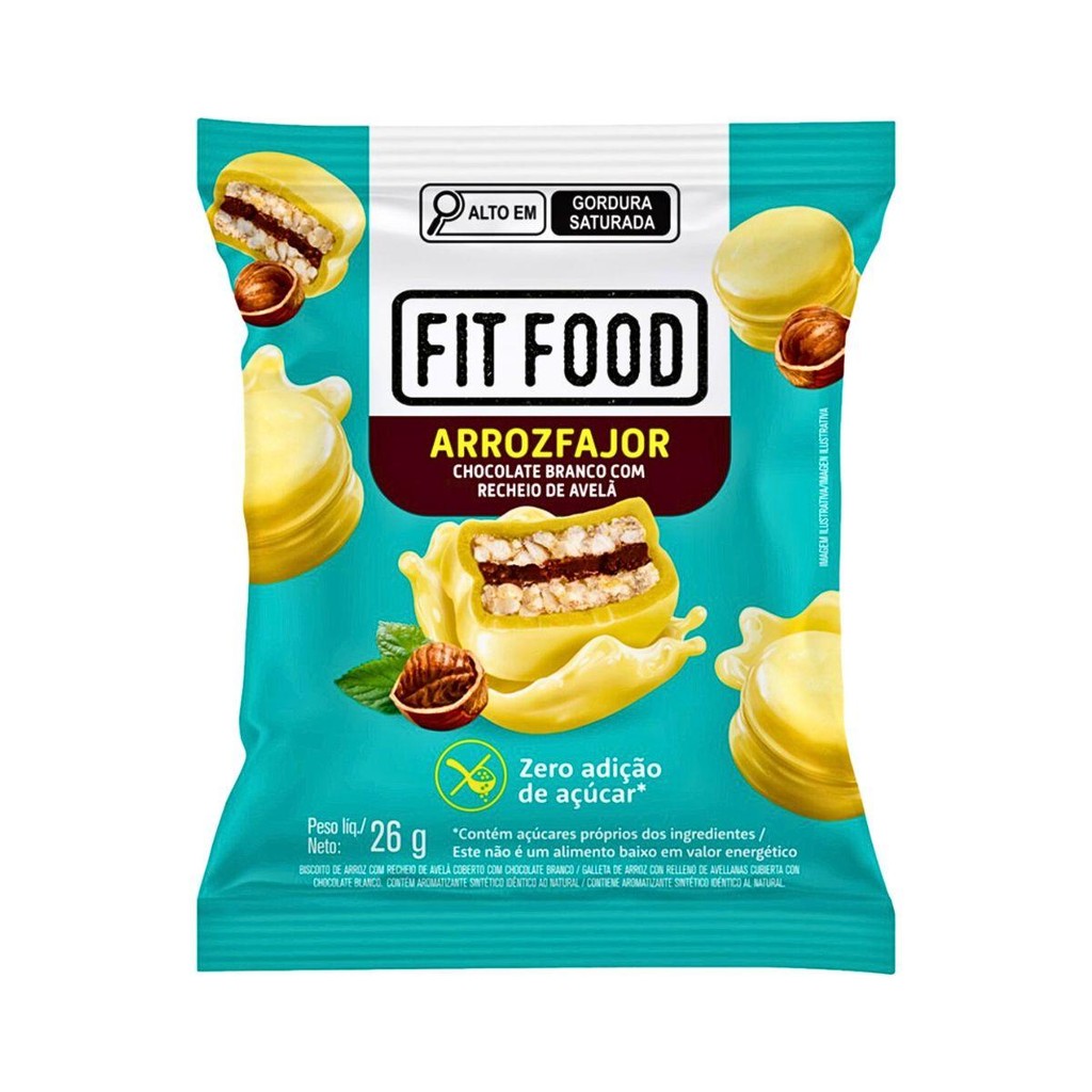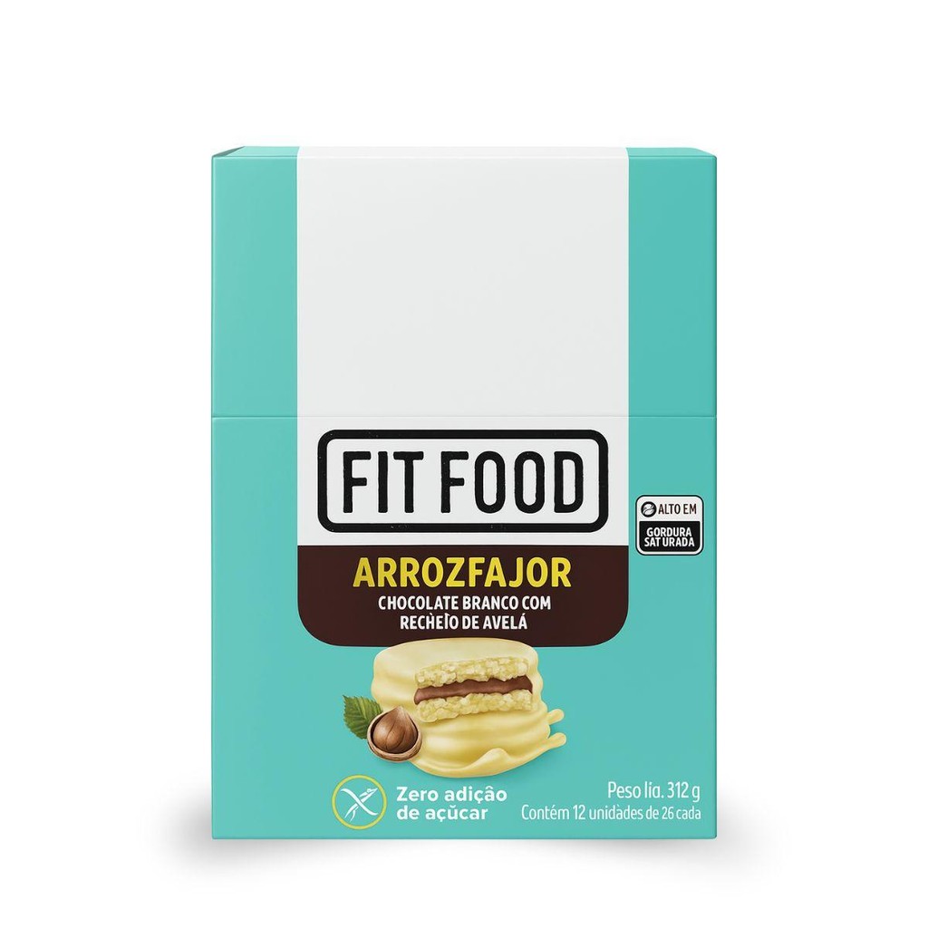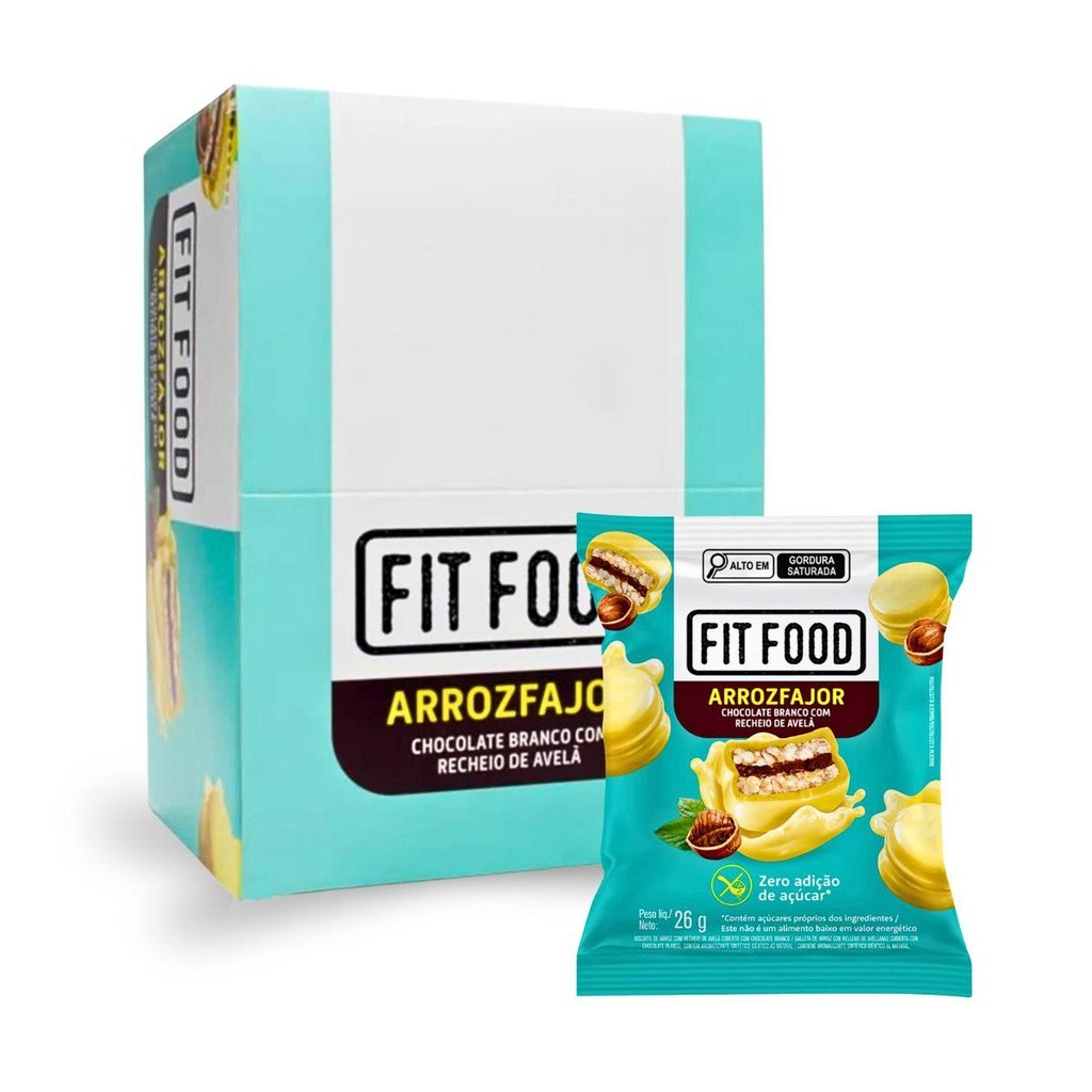 Caixa 12un Arrozfajor Avelã E Chocolate Branco Fit Food 26G