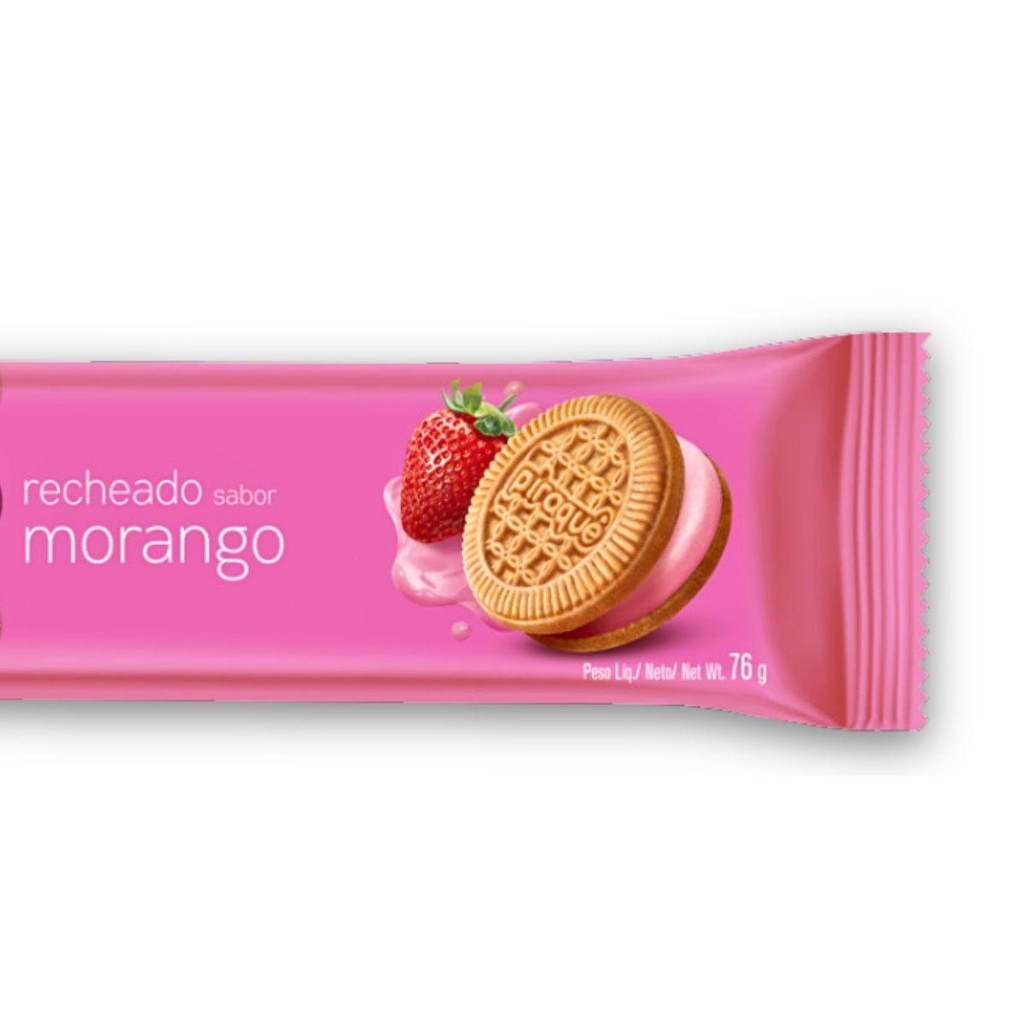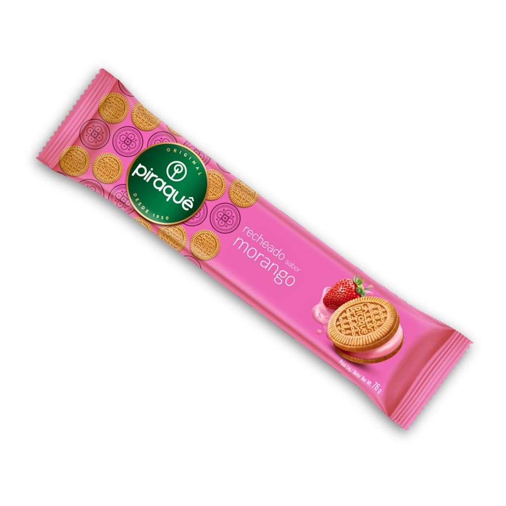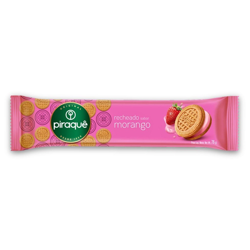 Kit 4un Biscoito 76G Recheio Morango Piraquê Pacote