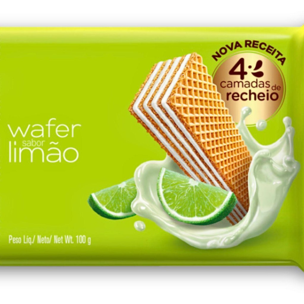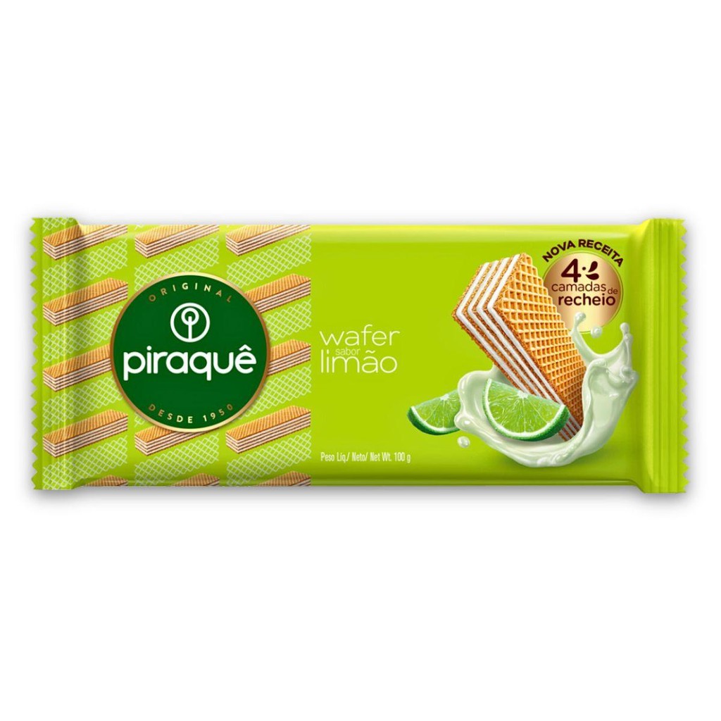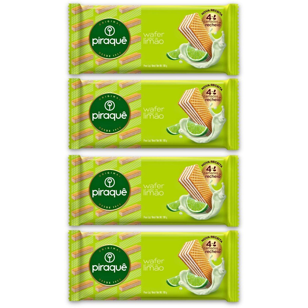 Kit 4un Pacote Biscoito Wafer 100G Piraquê Recheio Limão