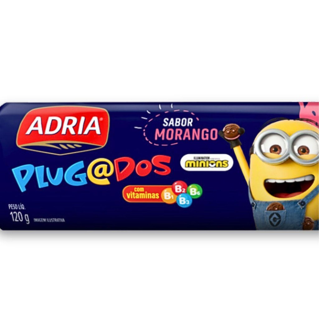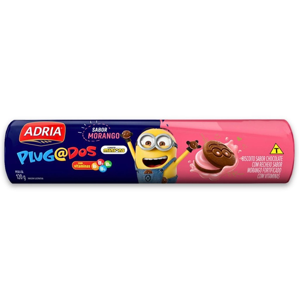 Kit 4un Biscoito Chocolate 120G Morango Minions Adria Plugados