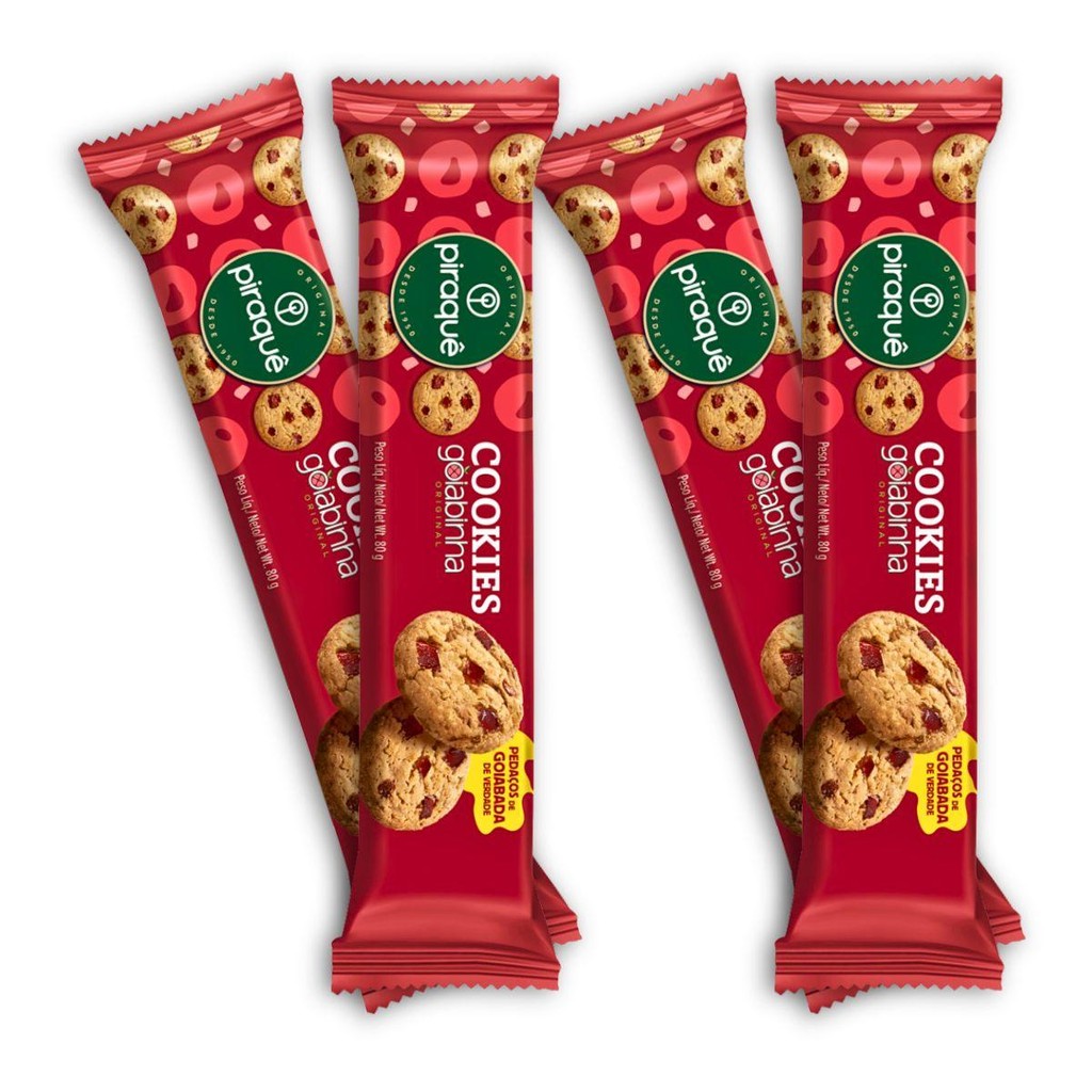 Kit 4un Biscoito Cookie 80G Piraquê Original Goiabinha