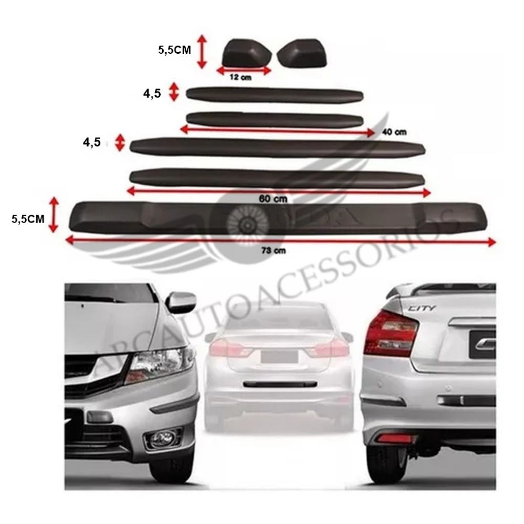 Protetor Parachoque Borrachão Honda Fit Civic City Kit 7 Peças