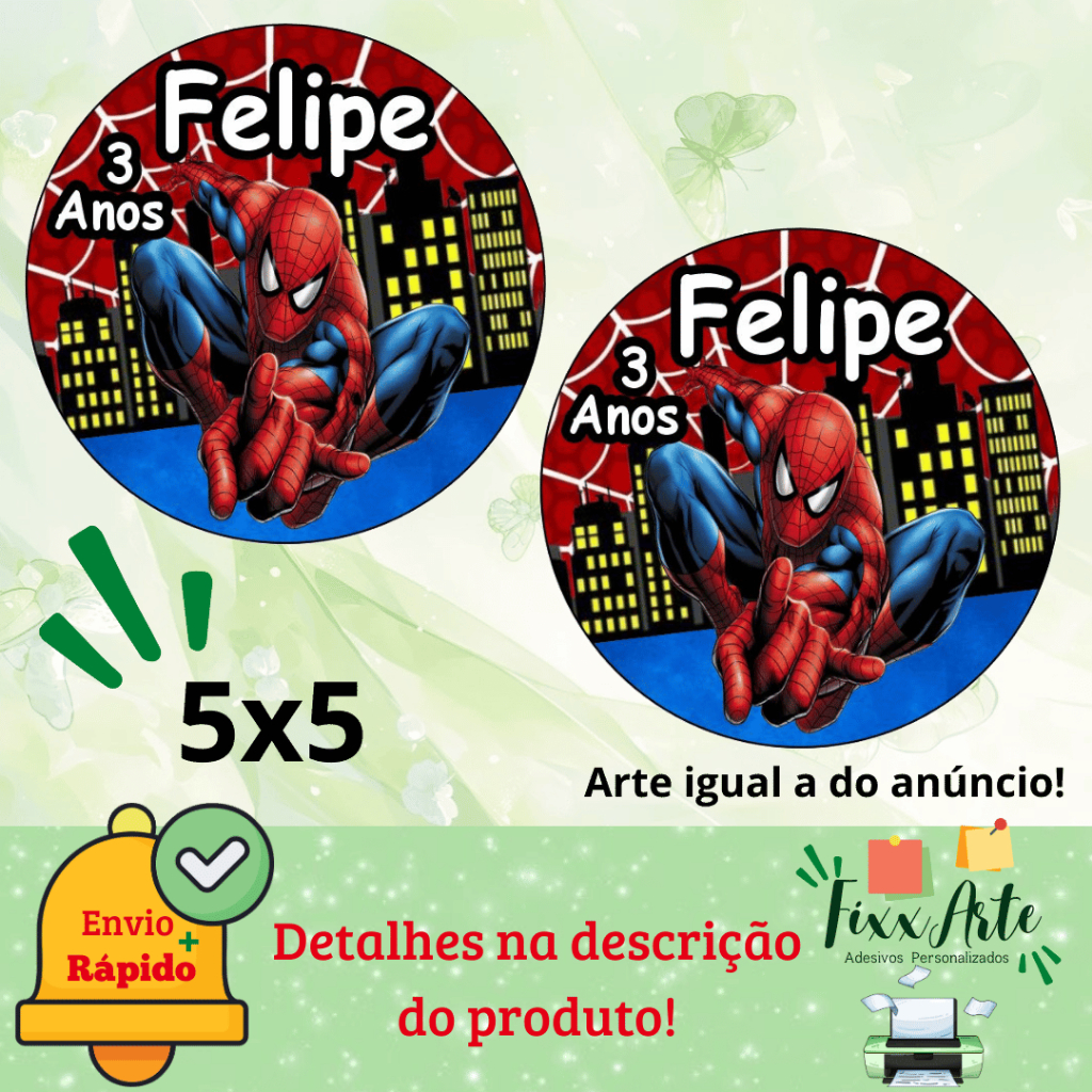 HOMEM ARANHA- 100/60/40 Adesivos Personalizados para Festas ( Envia Rápido)