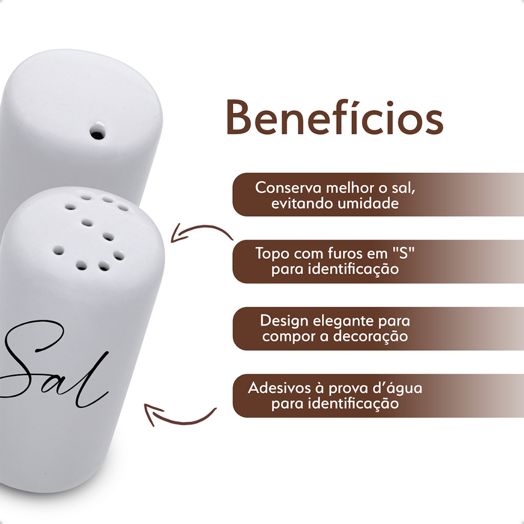 Kit Cozinha Saleiro e Paliteiro de Porcelana