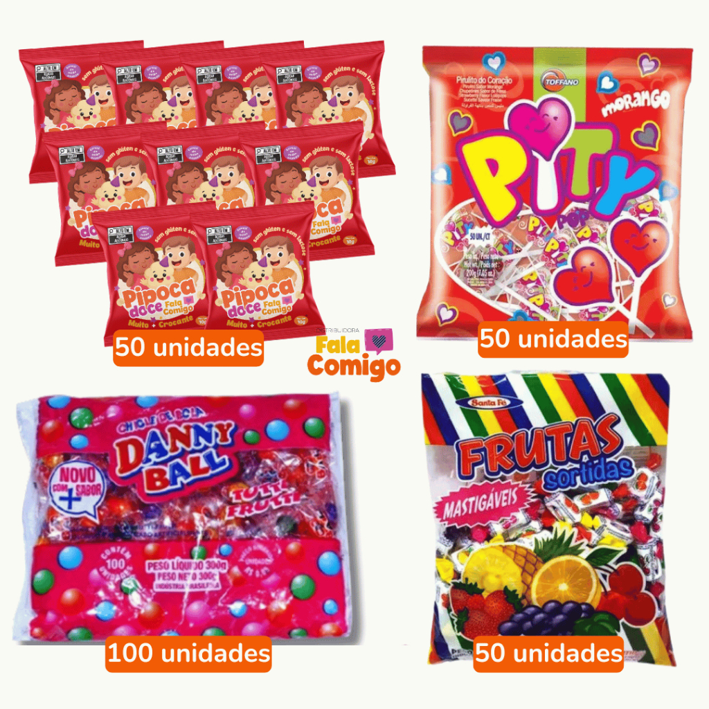 Kit Caixa de Guloseimas Para Aniversário Infantil 50 Sacolinha Surpresa Doces Guloseimas Festa