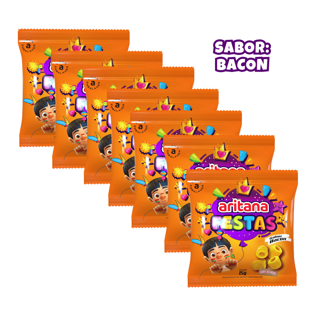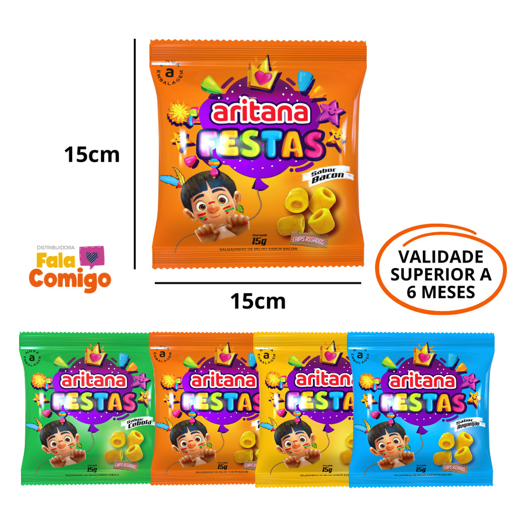 Salgadinho Com 15/20/30/40/50/60/100 Unidades 10g Cada Aritana Lembrancinha Festa Bacon Sortido Cebola Queijo Requeijão