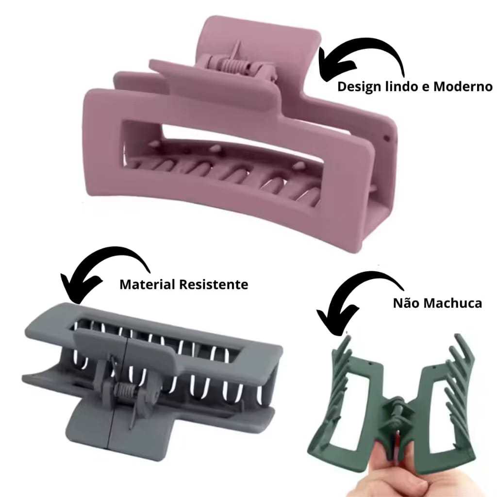 Kit 4 Piranha de Cabelo Grande Grampo Prendedor Quadrado Tubarão Acessórios Presilha Fosca