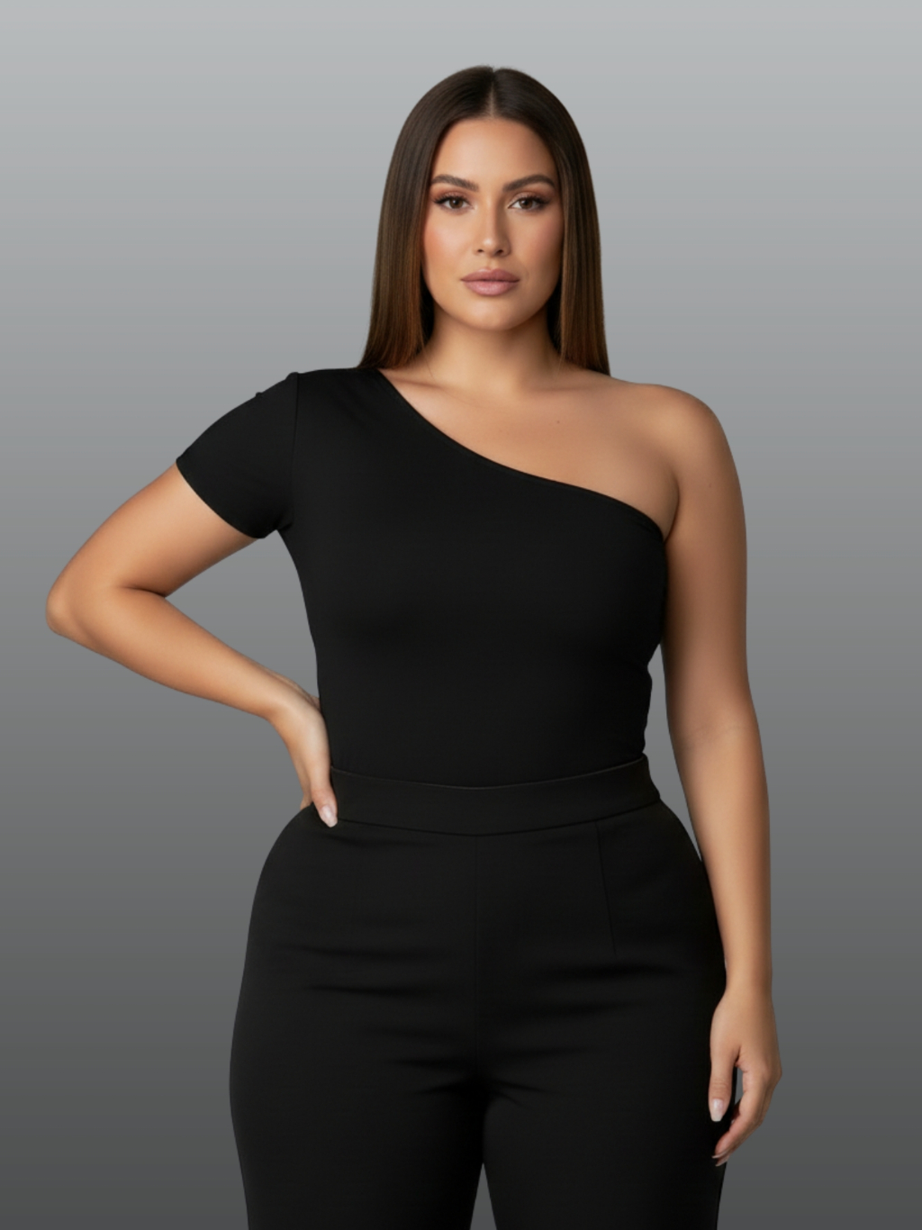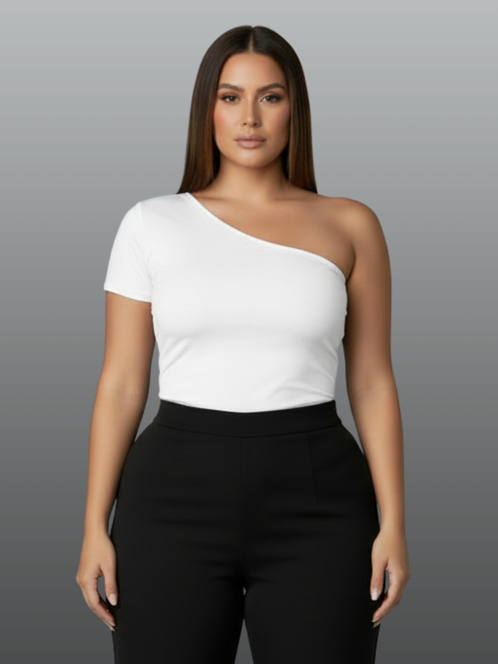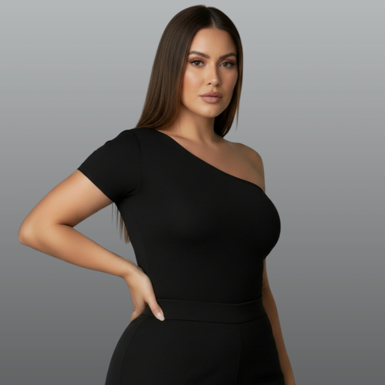 Blusa feminina plus size malha suplex mula manca ombro único forro duplo premium