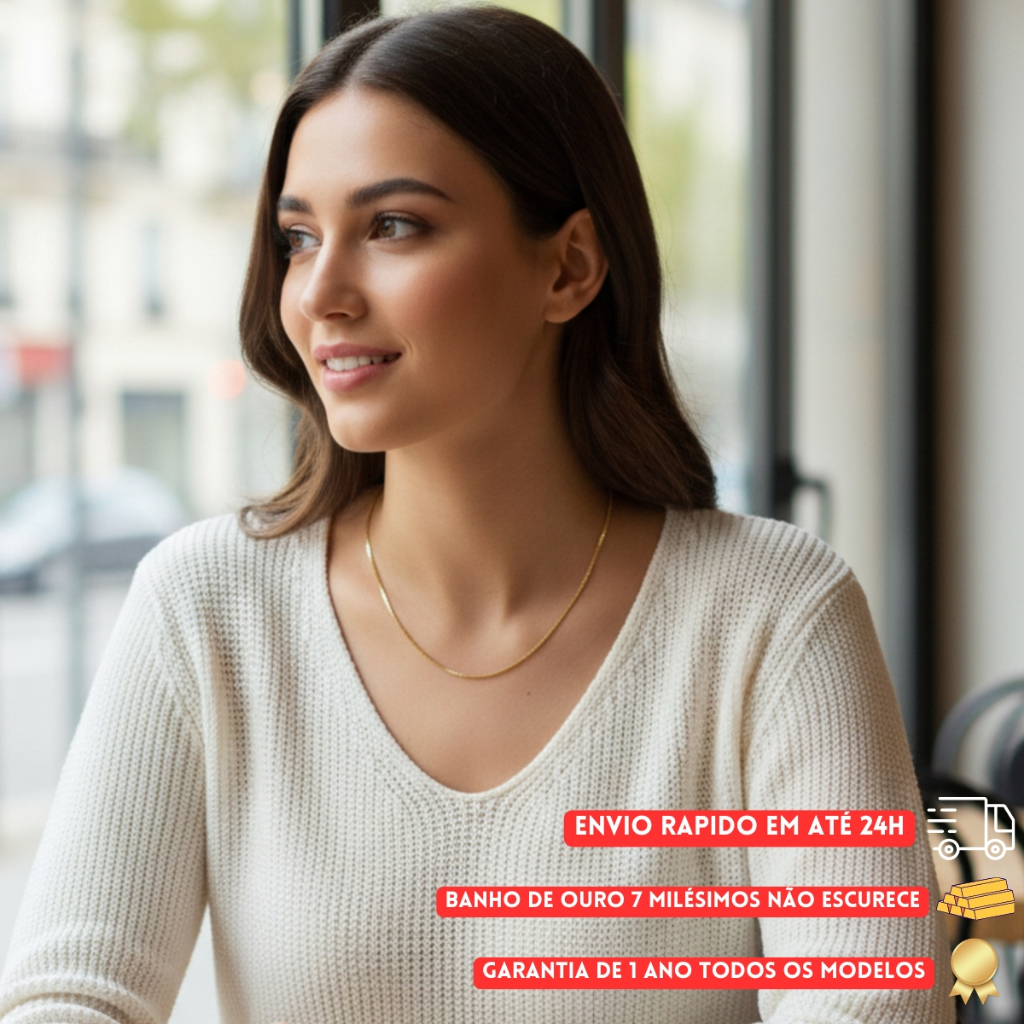 | SEMI JOIA | Colar Corrente Veneziana Feminina p/ Pingentes Cordão Banhado Ouro 18k Anti Alérgico