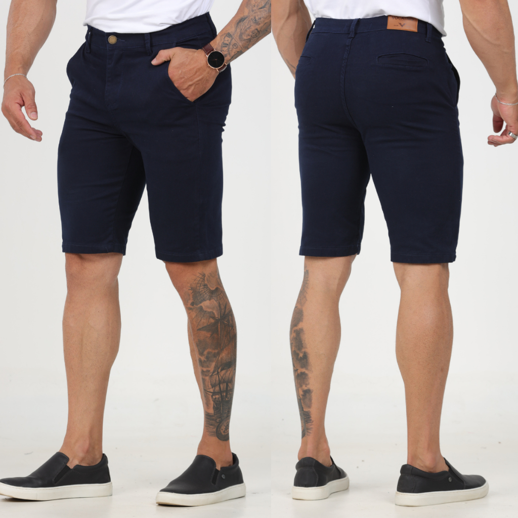 Bermuda Masculina Alfaiataria Sarja Sport Fino, BOLSO EMBUTIDO, Com Lycra Tecido Premium