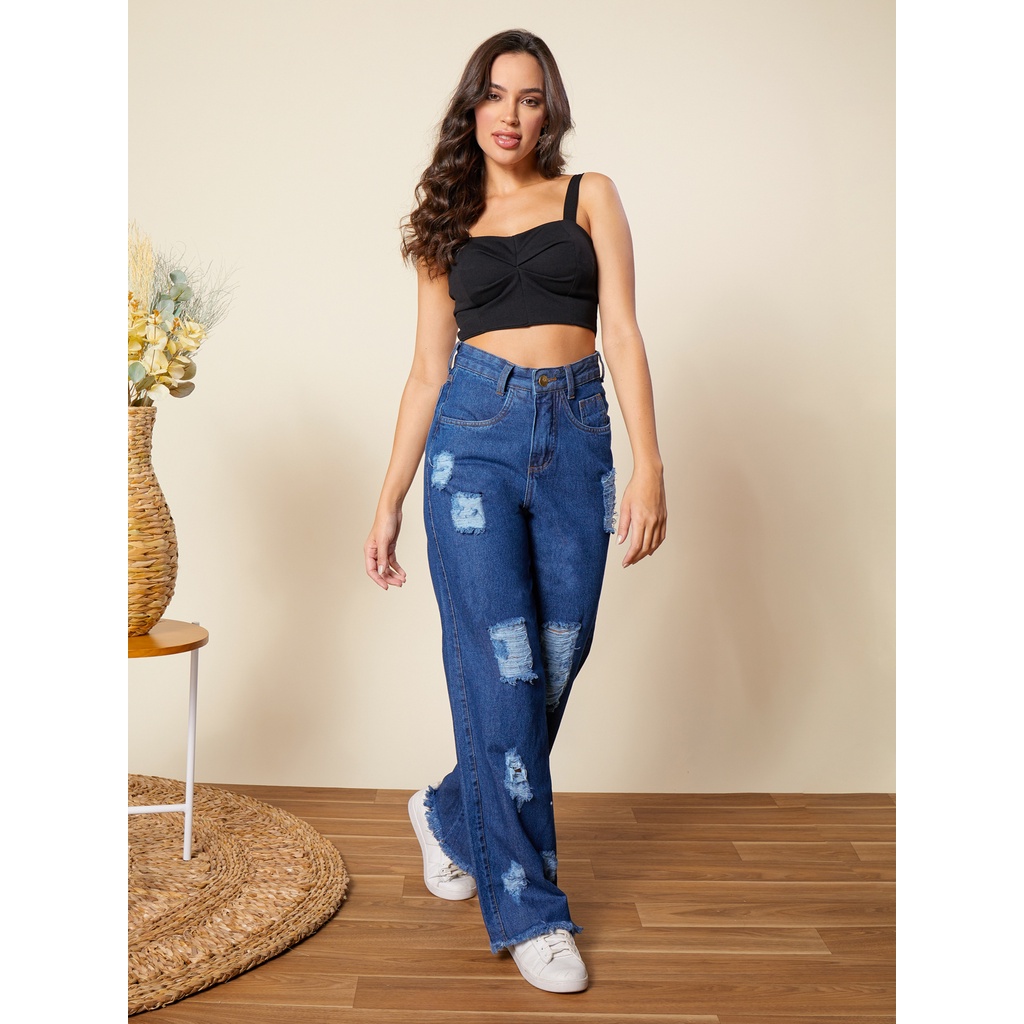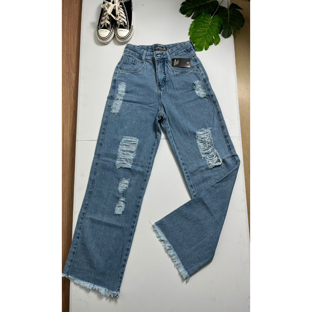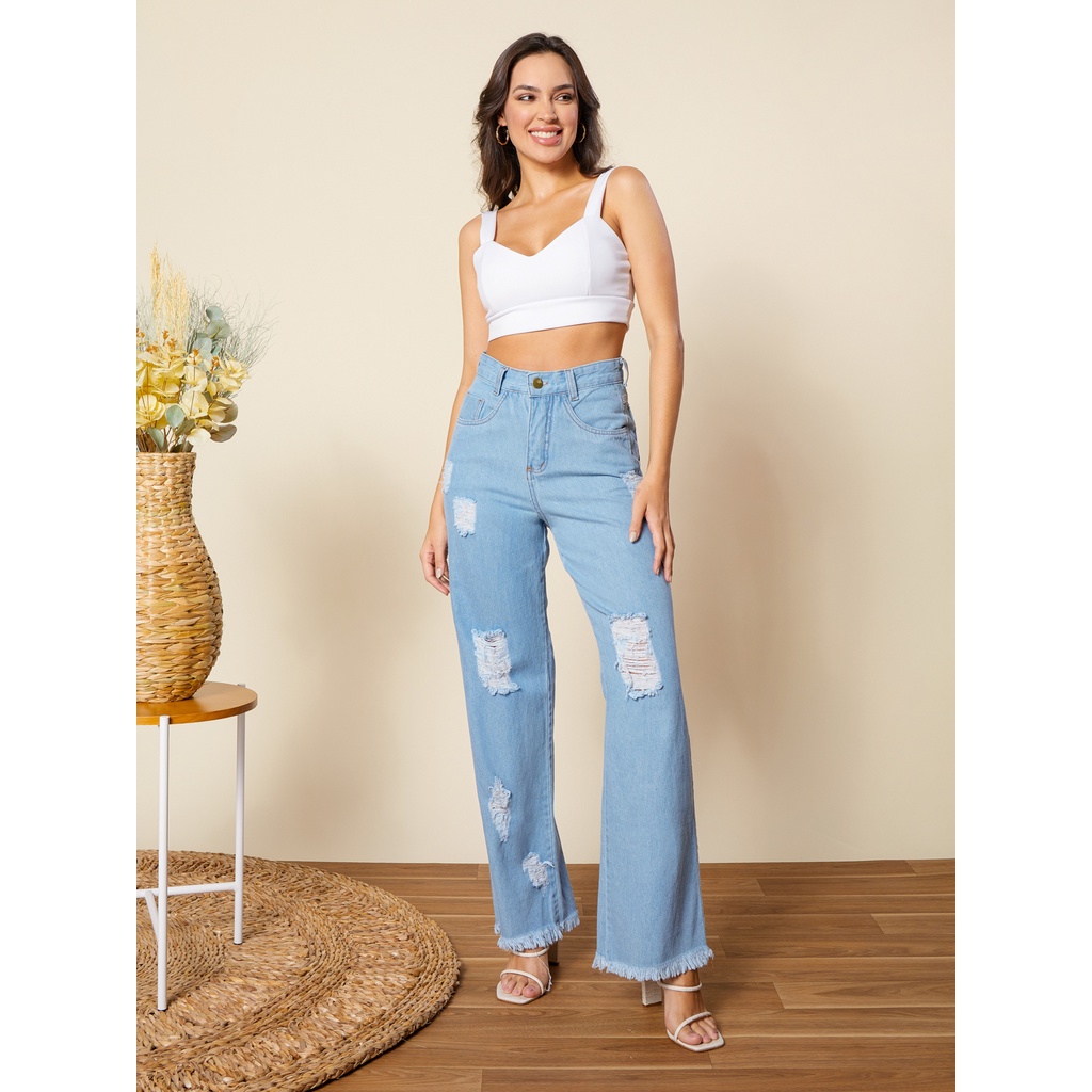 Calça Jeans WIDE LEG Rasgadin desfiado