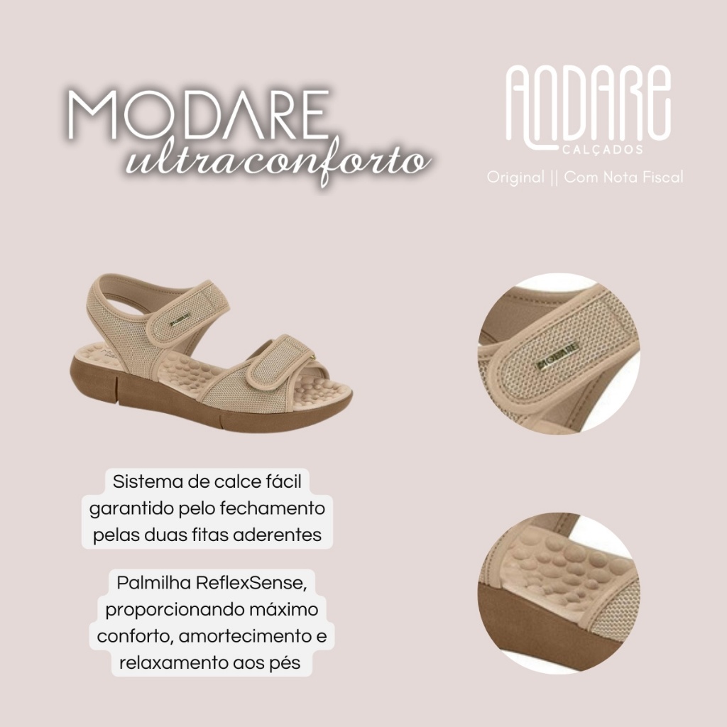 Sandalia Ortopedica Modare Feminina Massageadora Velcro Ultraconforto Macia Leve Original