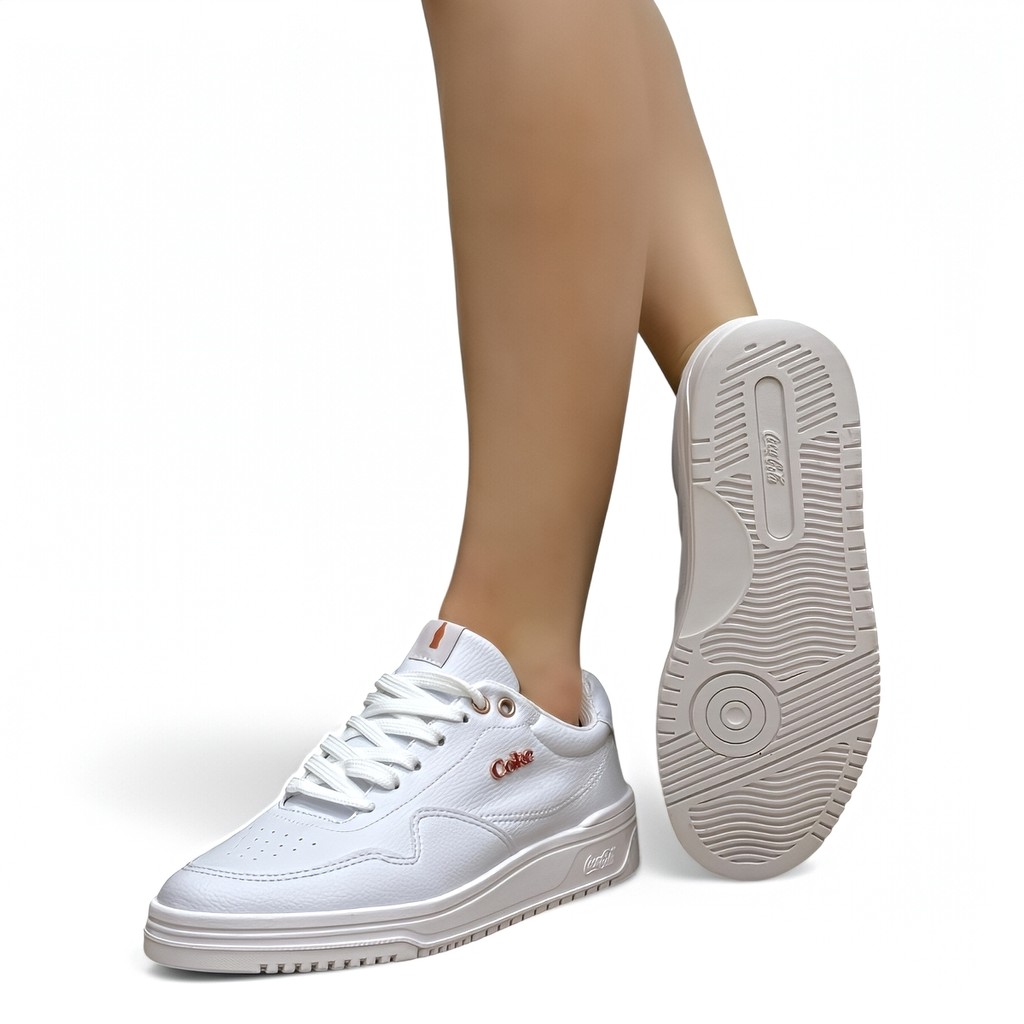Tenis Coca Cola Feminino Branco Hope Town Couro Casual Macio