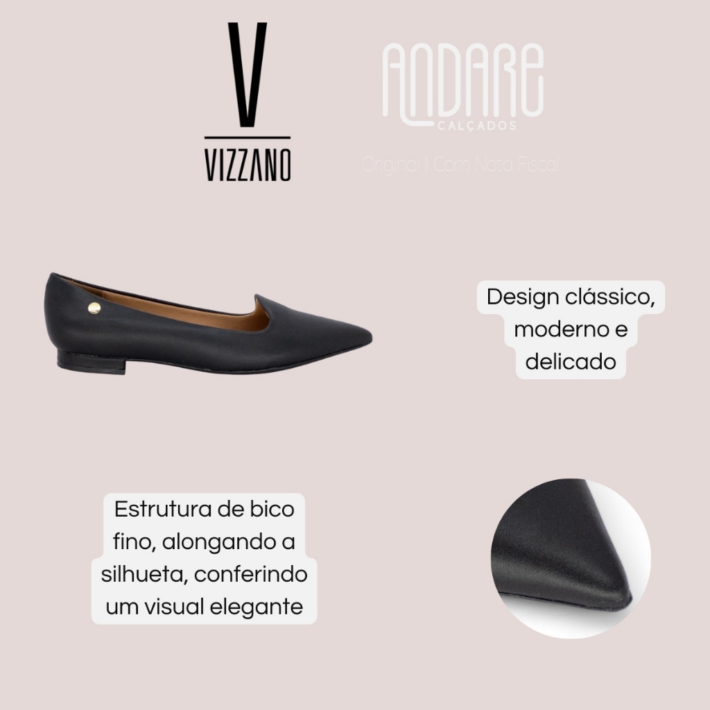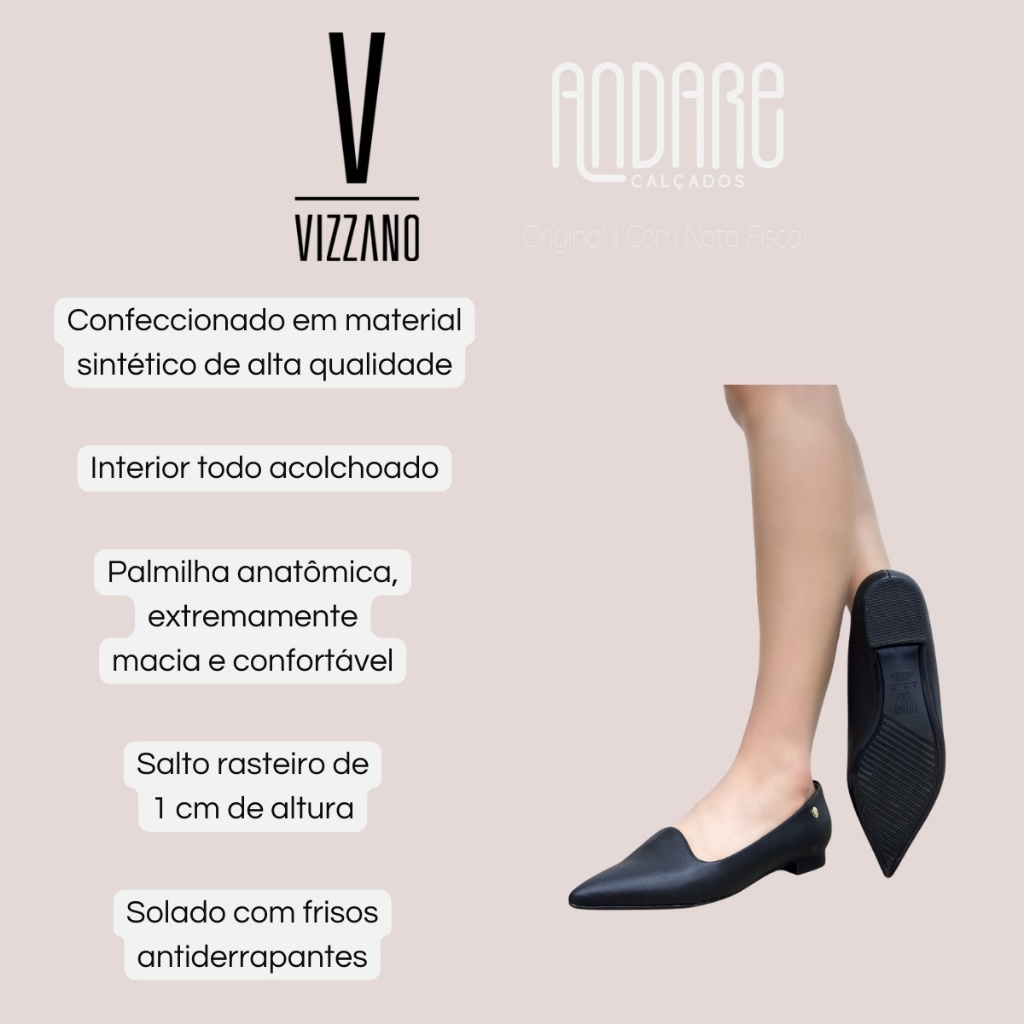 Sapatilha Vizzano Bico Fino Casual Salto Bloco Feminina Original