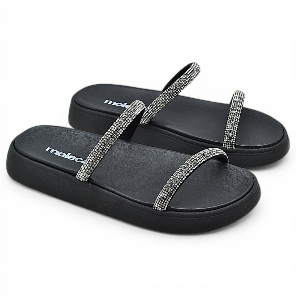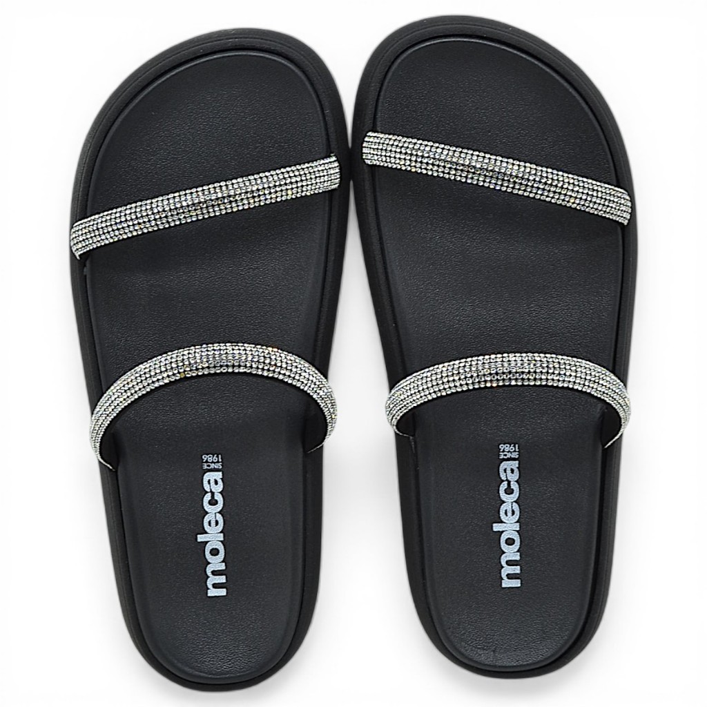 Sandalia Papete Moleca Feminina Tiras Strass Flatform Macia Original
