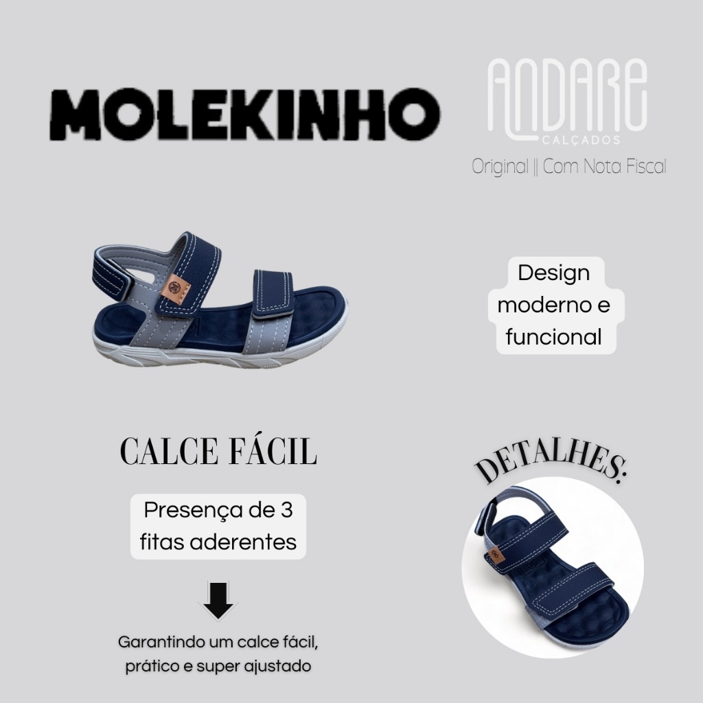 Sandalia Molekinho Infantil Masculino Tiras Ajustavel Conforto Leve Original
