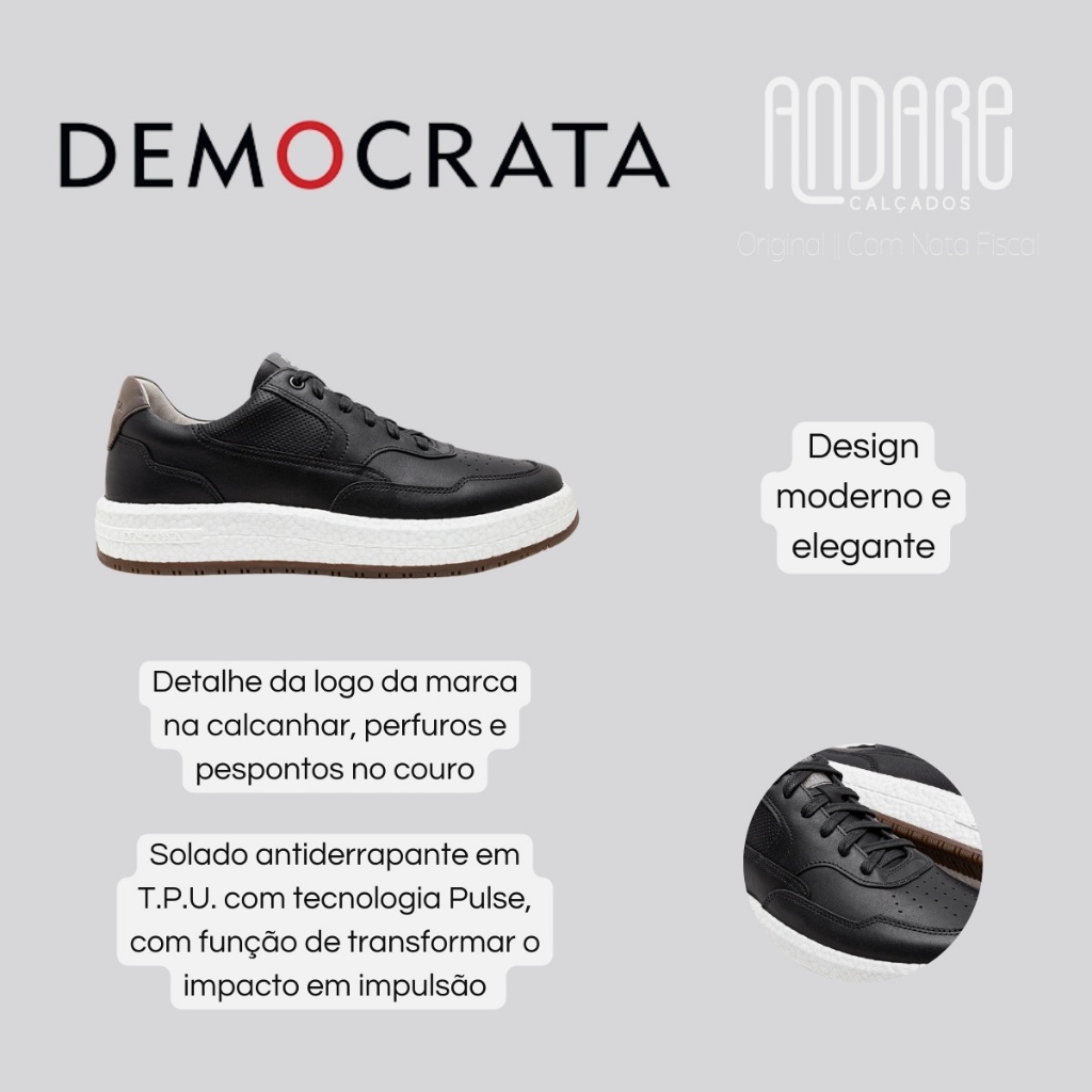 Tenis Democrata Masculino Denim Drake Pulse Couro Original