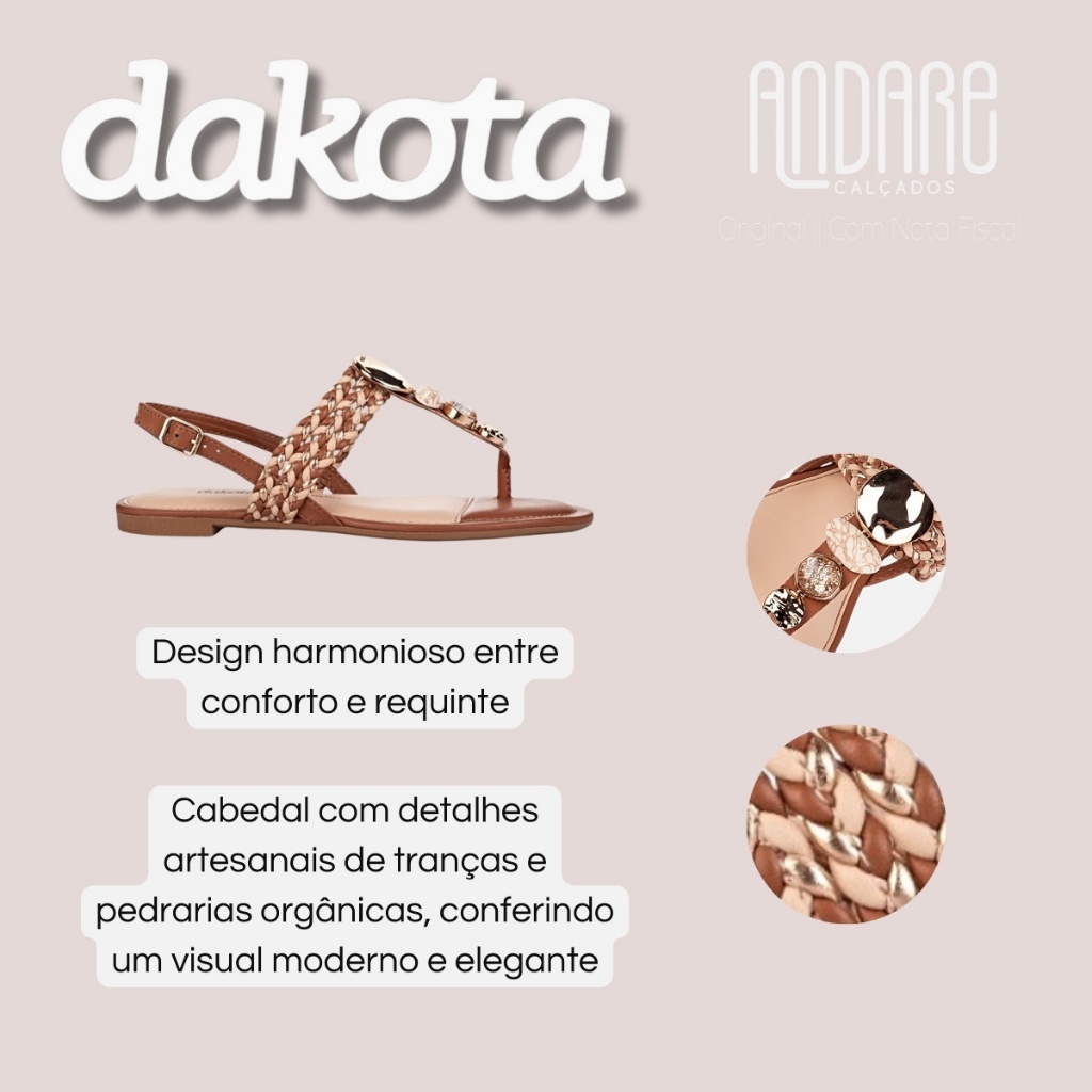 Sandalia Dakota Rasteira Conforto Feminina Pedraria Macia Original