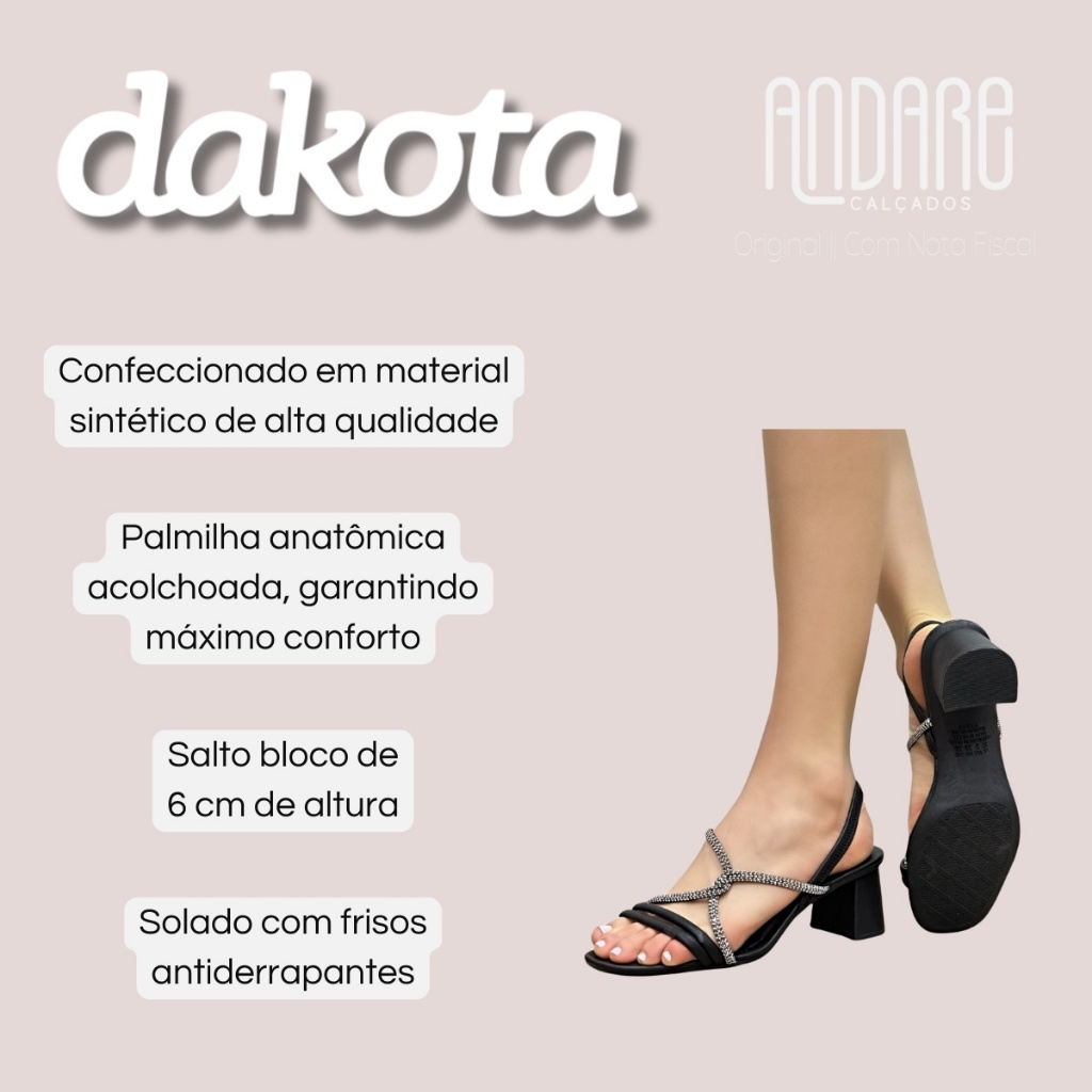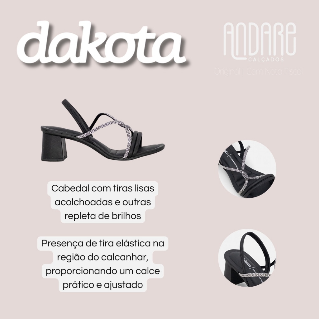 Sandalia Dakota Salto Grosso Bloco Conforto Feminina Strass Original