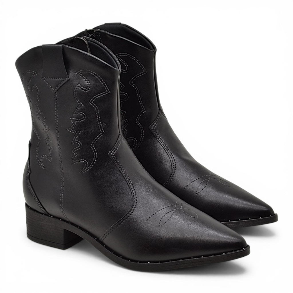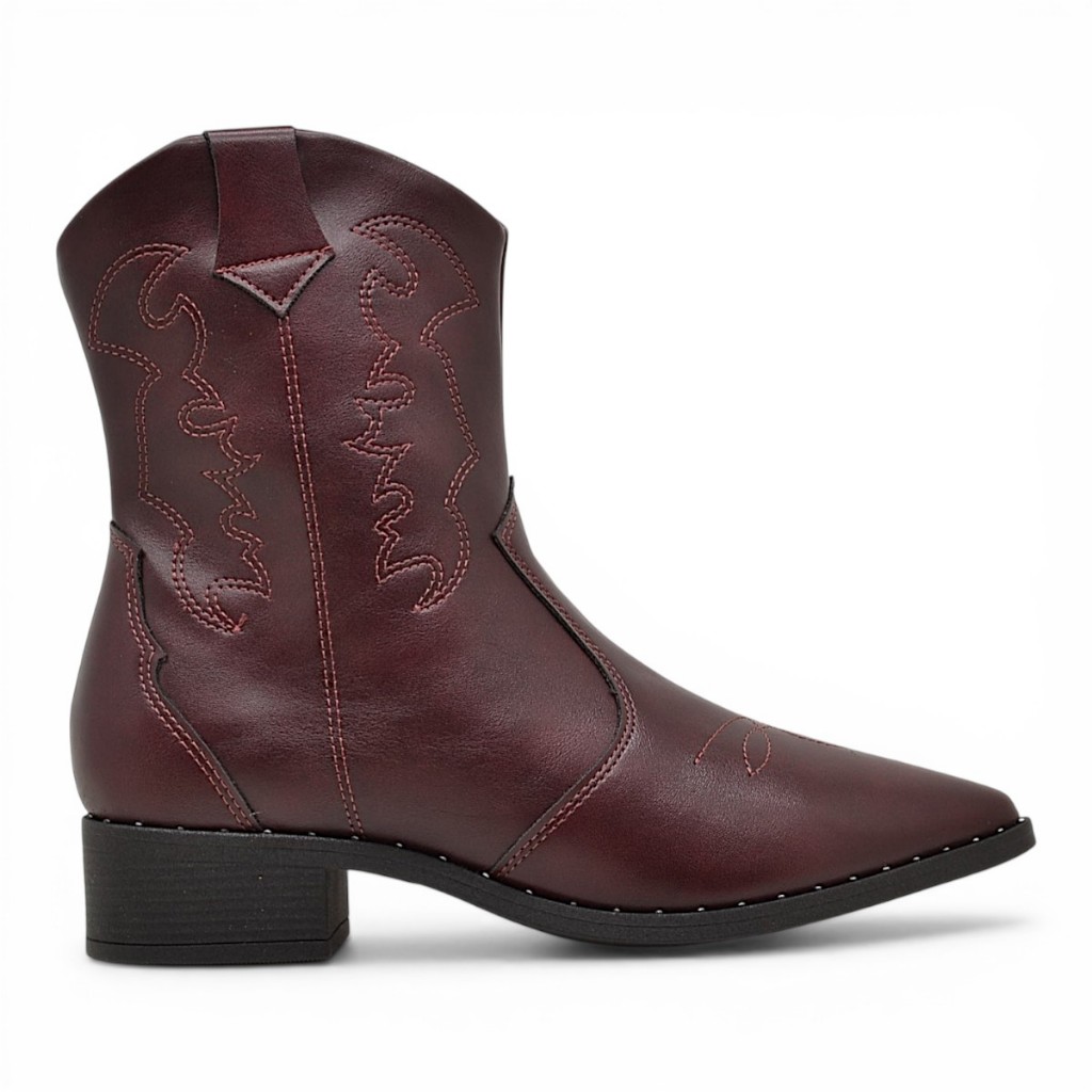 Bota Beira Rio Conforto Feminina Cano Curto Western Salto Grosso Bico Fino Original