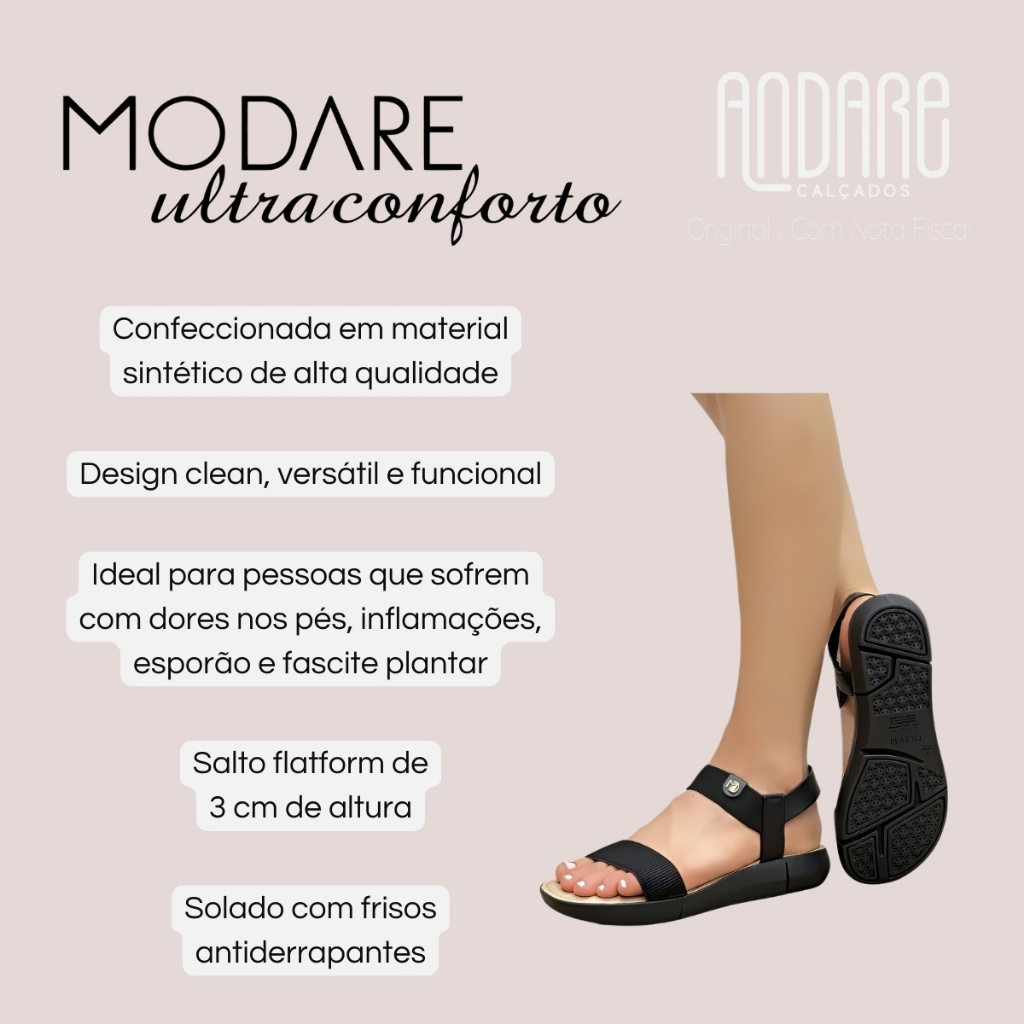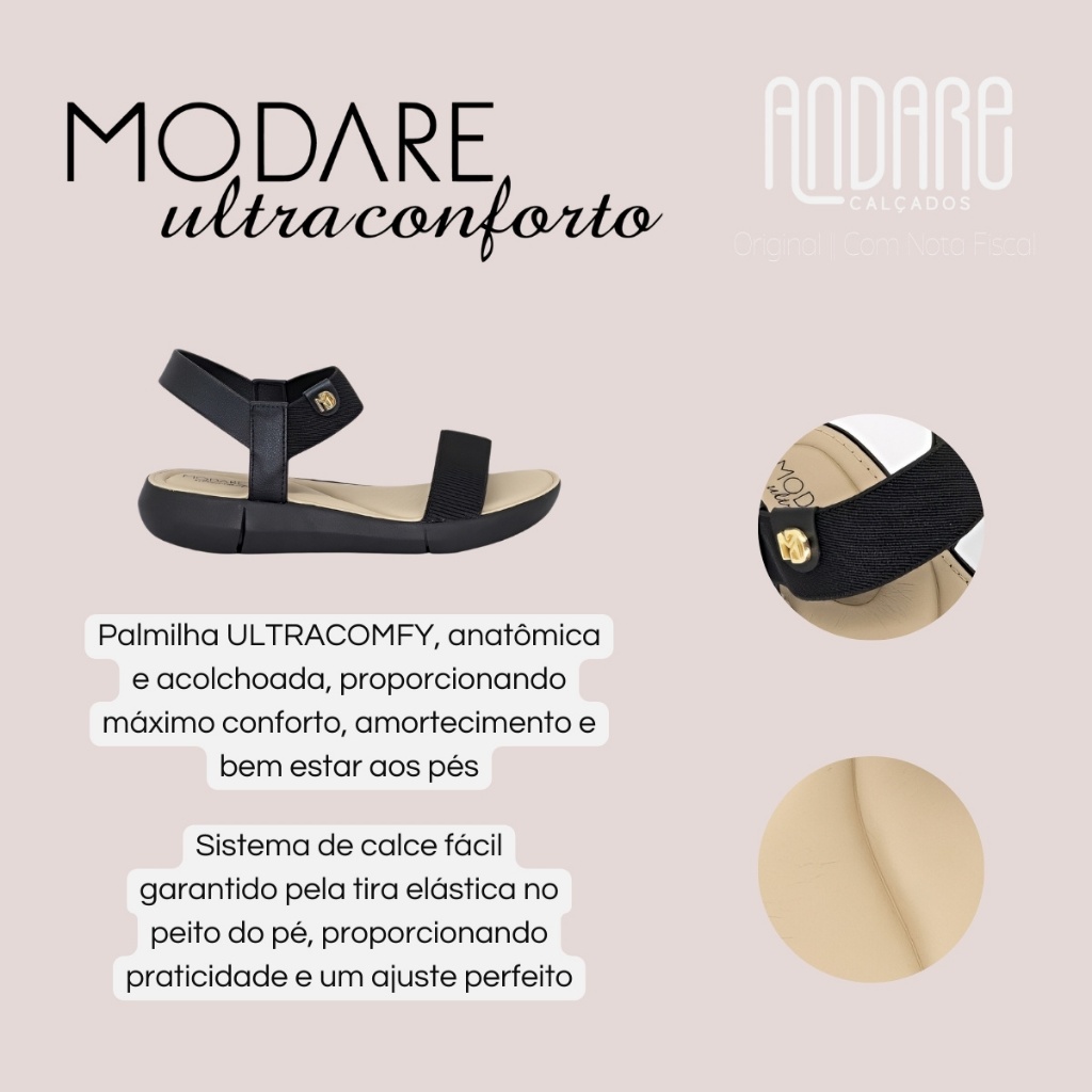 Sandalia Modare Ultra Conforto Ortopedica Feminina Elastico Original