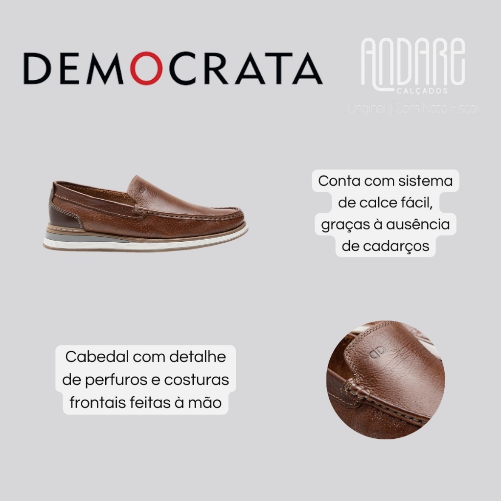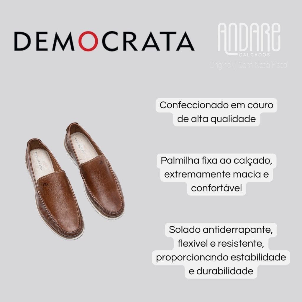 Mocassim Democrata Masculino Couro Denim Flow Casual Macio Original